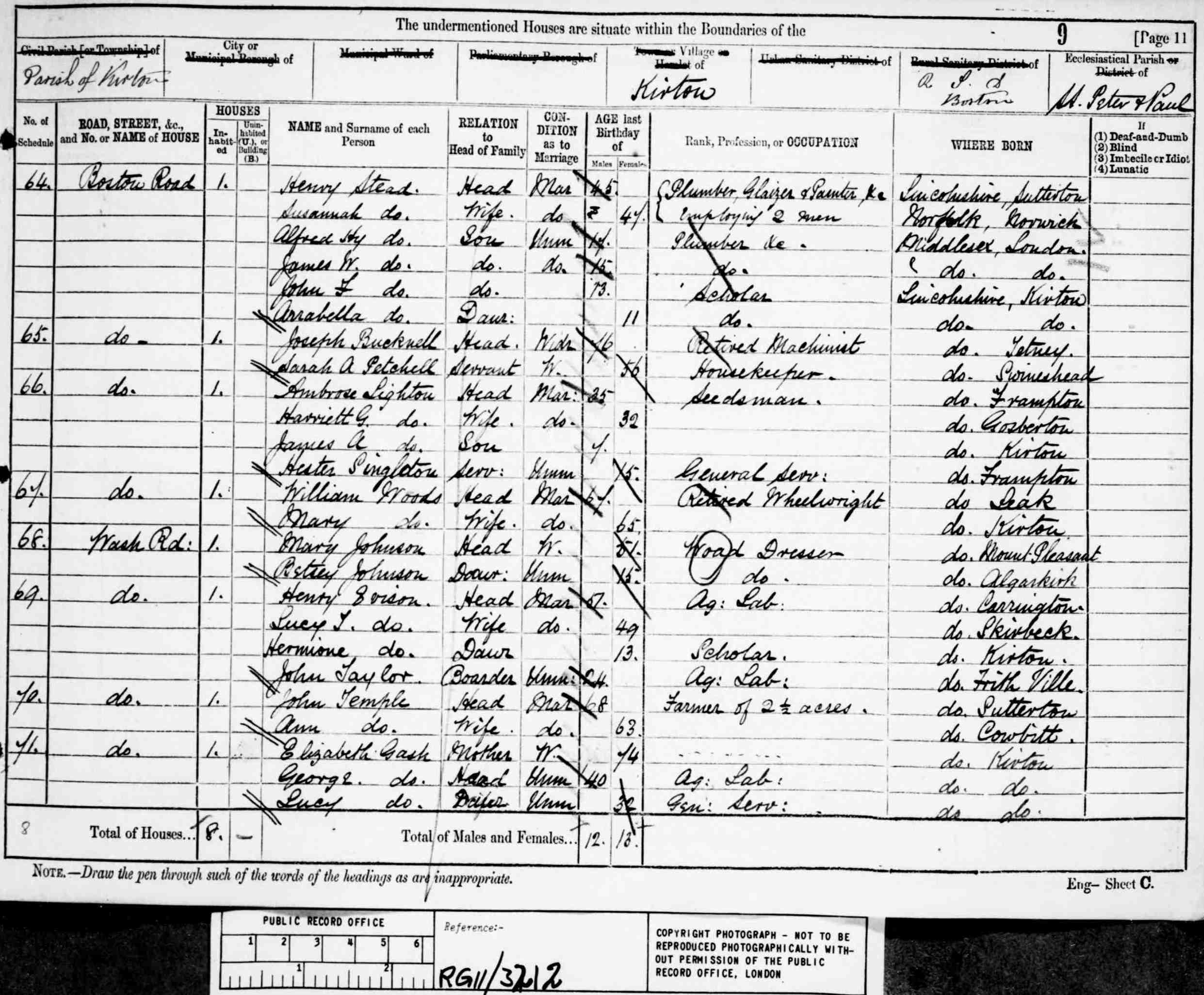 • Occupation: Farmer, 60 acres, 1871, Algarkirk, Lincolnshire, England. 8 • Lived at: Wash Road, 1881, Kirton, Lincolnshire, England. 9