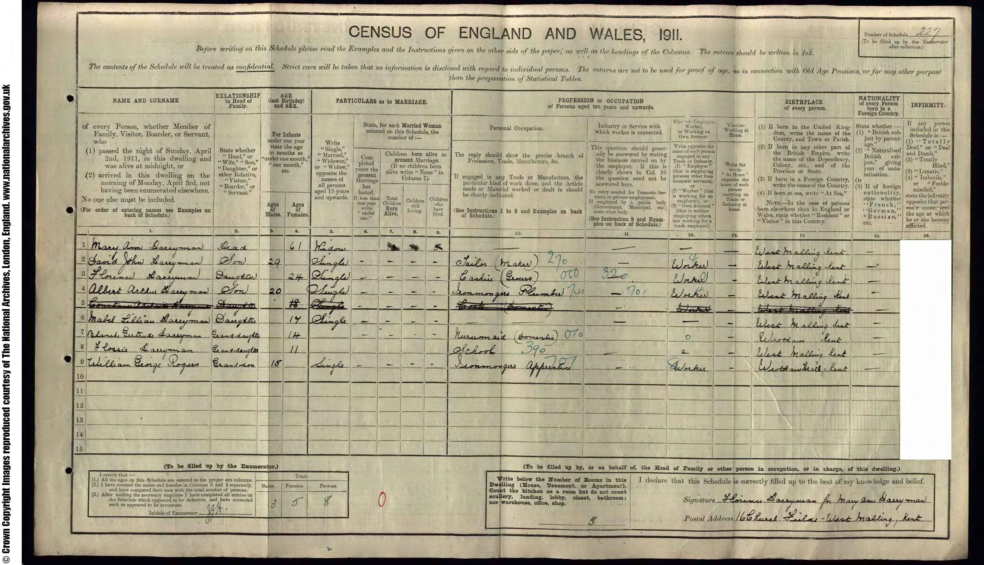 • Lived at: 16 Churchfields, 1911, Malling, Kent, England. 5