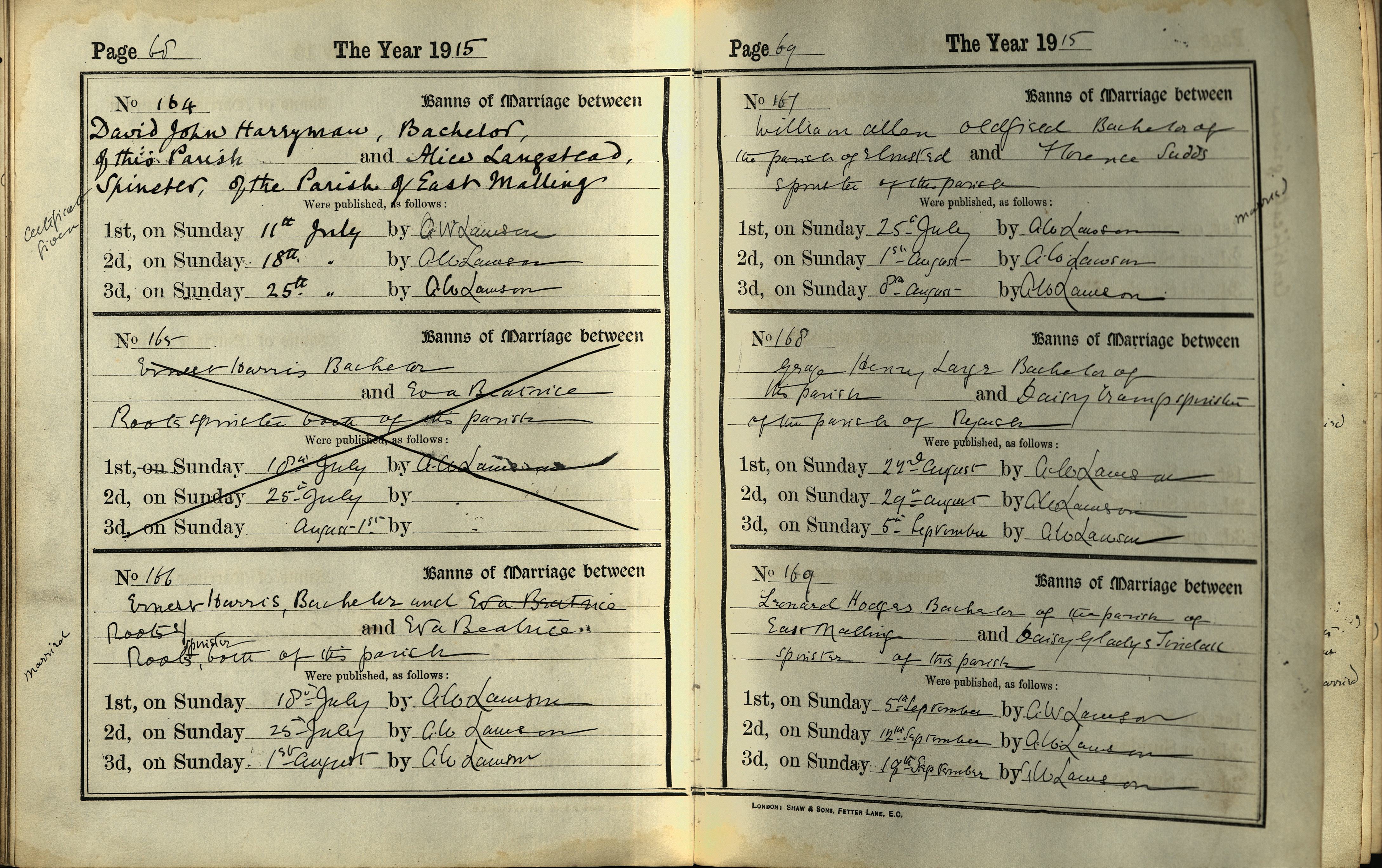 • Occupation: Ladies and Gents Tailor, 1939, Malling R.D., Kent, England. David married Alice Lankstead on 2 Aug 1915 in Malling, Kent, England. (Alice Lankstead was born on 3 May 1885 and died after 1962.) |