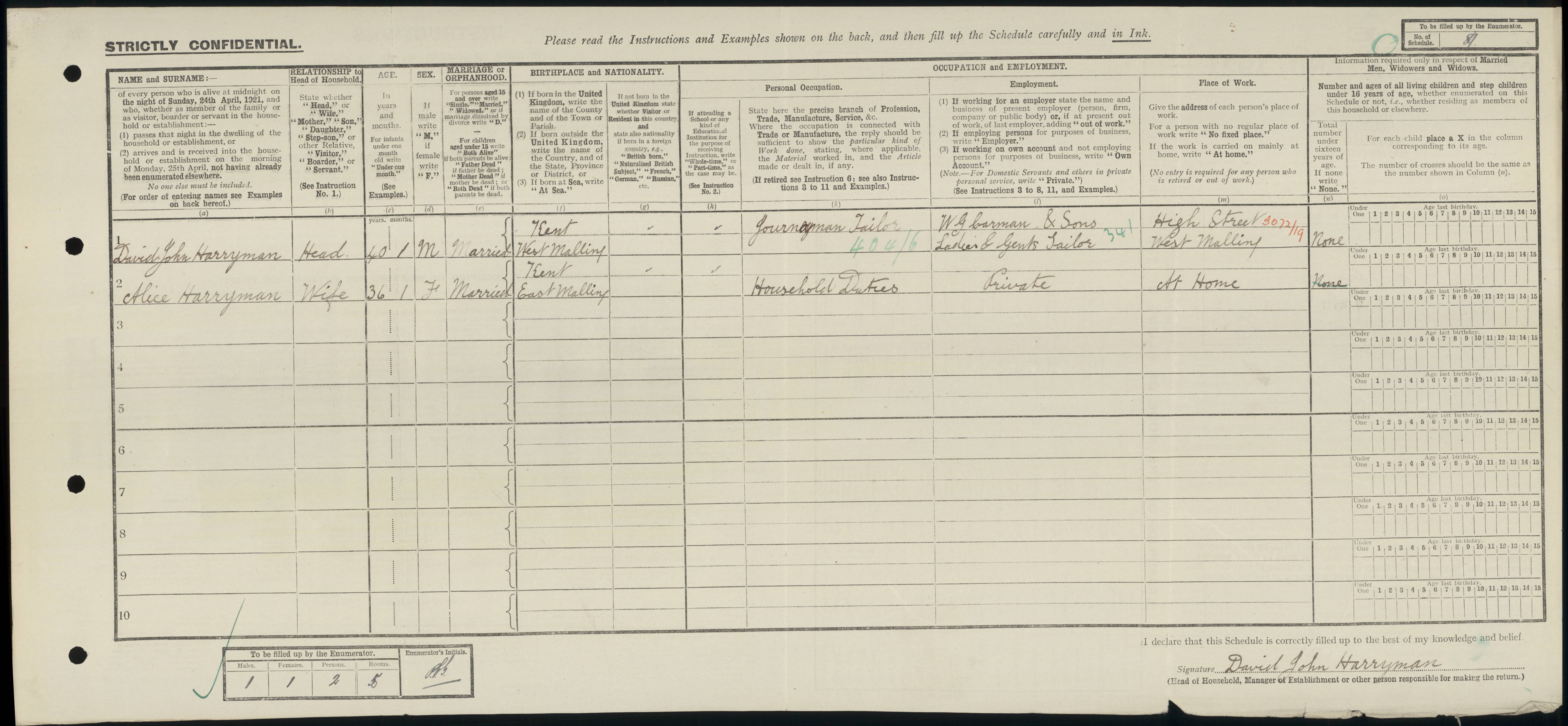 • Lived at: 16 Churchfields, 1921, West Malling, Kent, England. • Occupation: Gentleman tailor, 1921, West Malling, Kent, England.