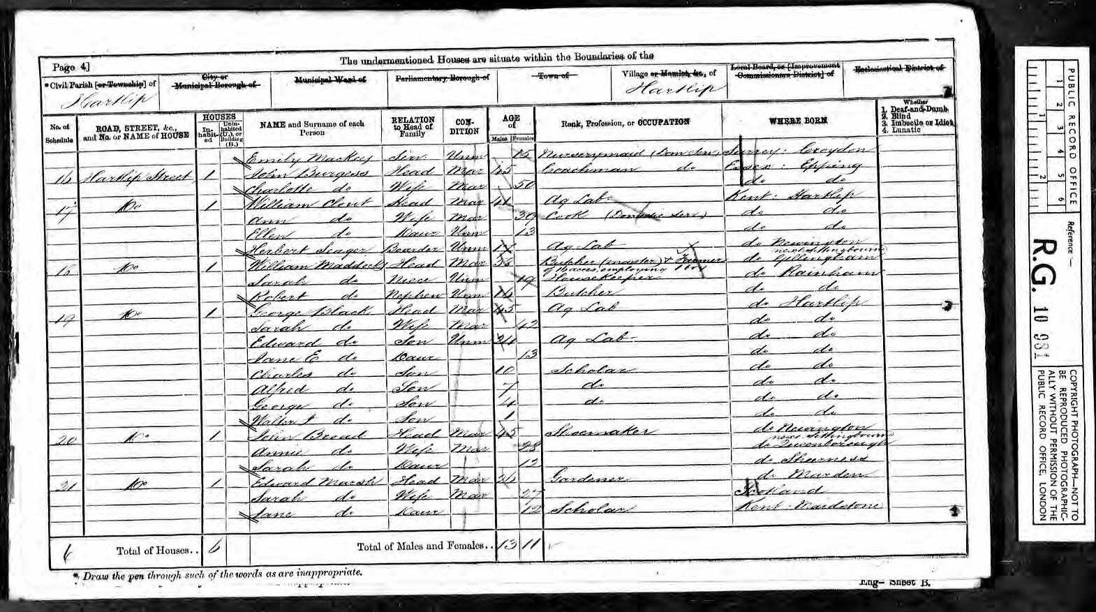 • Lived at: Street, 1841, Hartlip, Kent, England.