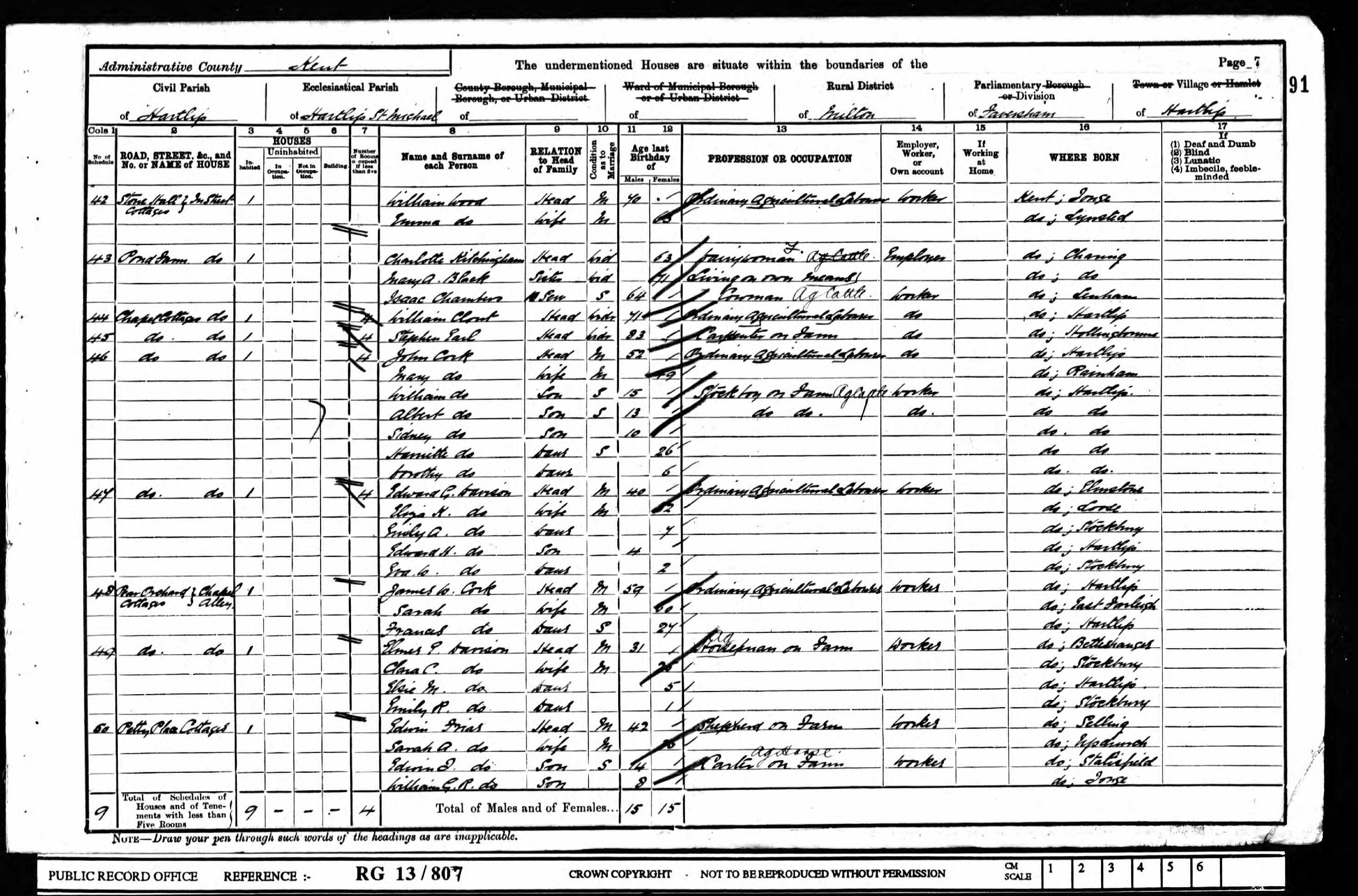 • Lived at: chapel cottages, 1901, Hartlip, Kent, England.