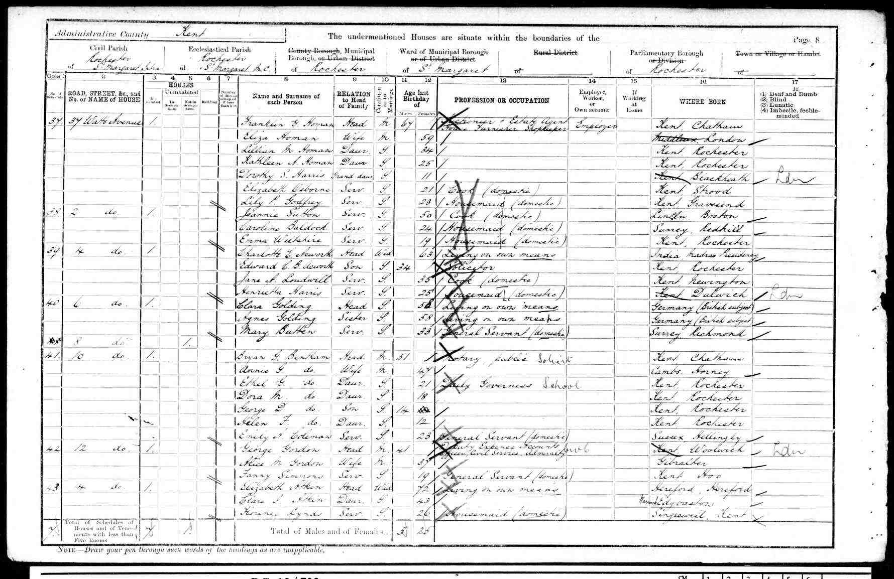 • Occupation: Domestic Servant, 1901, Rochester, Kent, England.