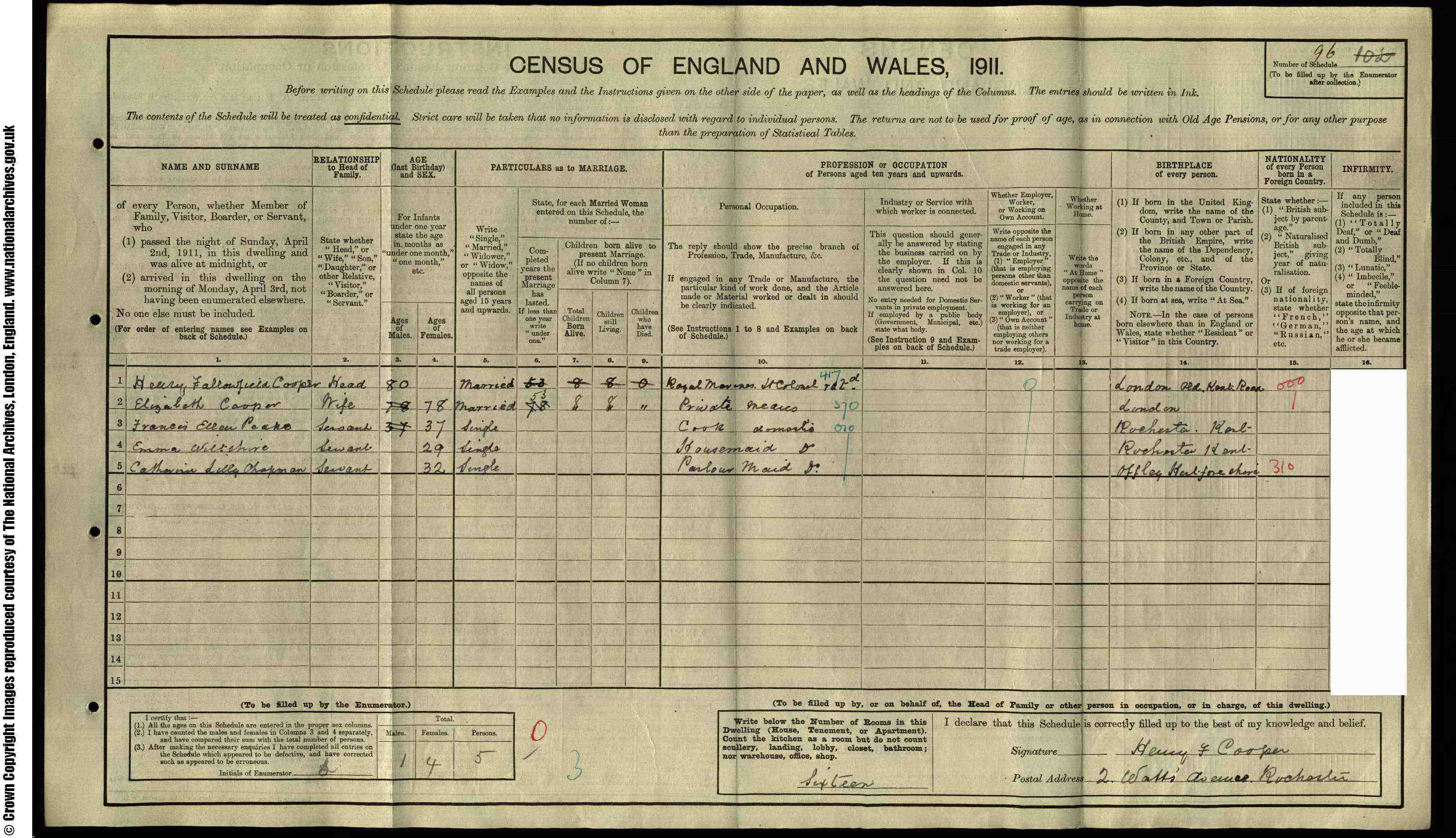 • Occupation: Domestic Servant, 1911, Rochester, Kent, England.