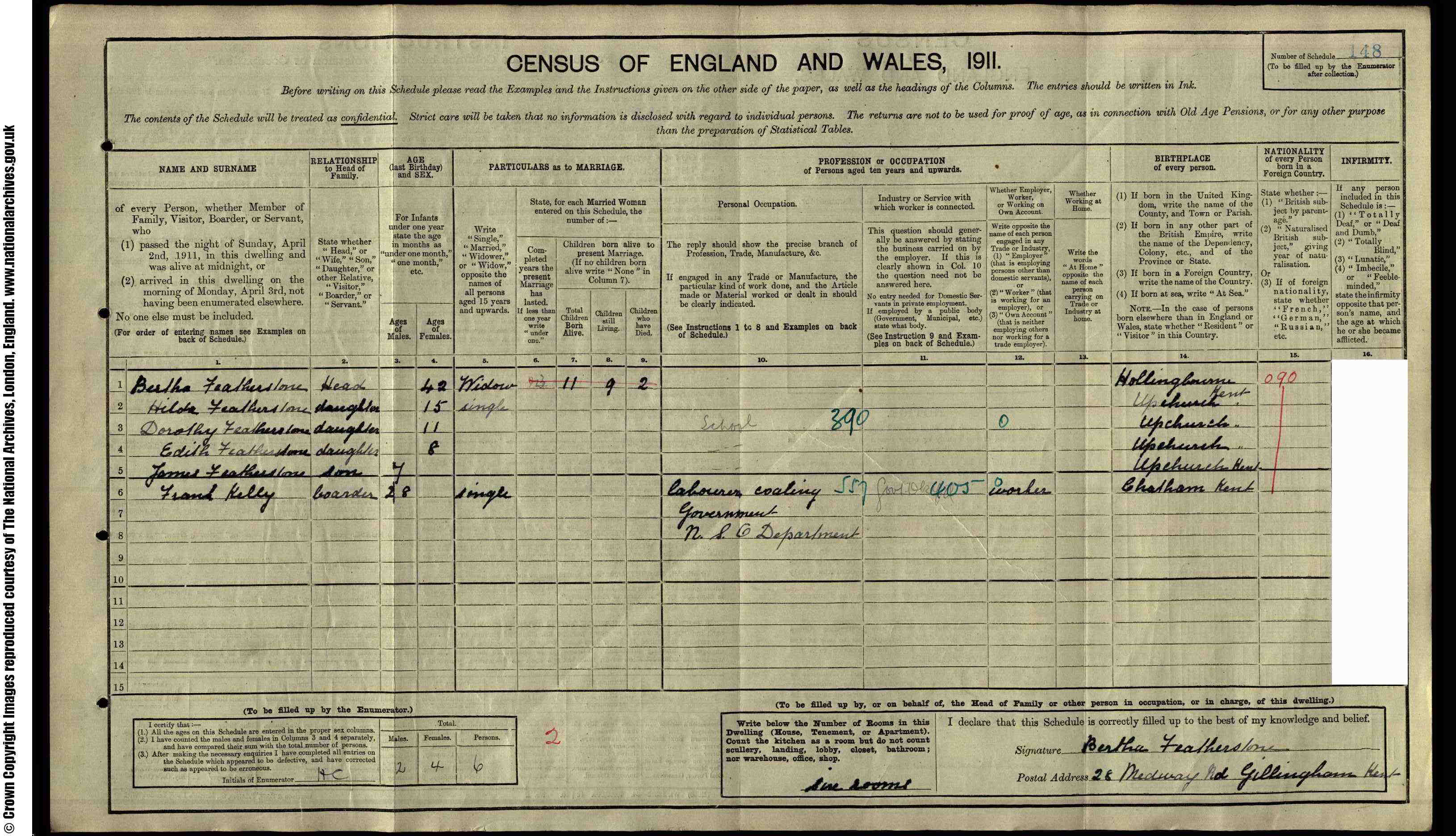 • Lived at: 28 Medway Road, 1921, Gillingham, Kent, England. |