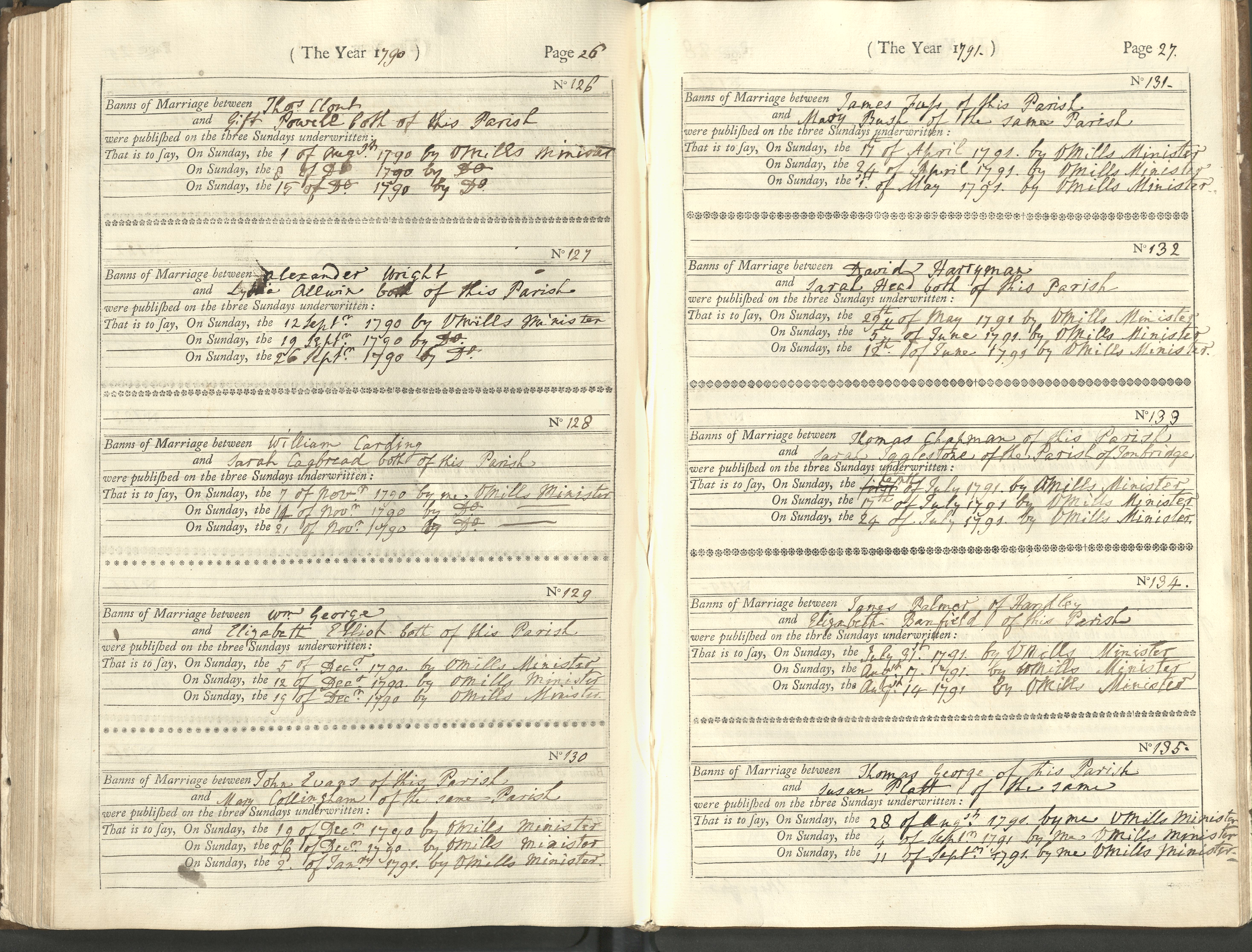 • Banns: St. Lawrence, 1791, Mereworth, Kent, England. David married Sarah Head, daughter of Nathaniel Head and Esther Cornford, on 13 Jun 1791 in Mereworth, Kent, England.1 (Sarah Head was born about 1769 in Mereworth, Kent, England 4 7, baptized on 24 Sep 1769 in Speldhurst, Kent, died on 4 Mar 1855 in 18 4 and was buried on 12 Mar 1855 in Greenwich St. Alphage, Kent, England.). The cause of her death was Natural Decay. David next had a relationship with Martha Dodson, daughter of John Dodson and Mary. (Martha Dodson was born in 1764, baptized on 20 Jan 1764 in Boughton Monchelsea, Kent, England. 8 and died after 1784 8.) |
