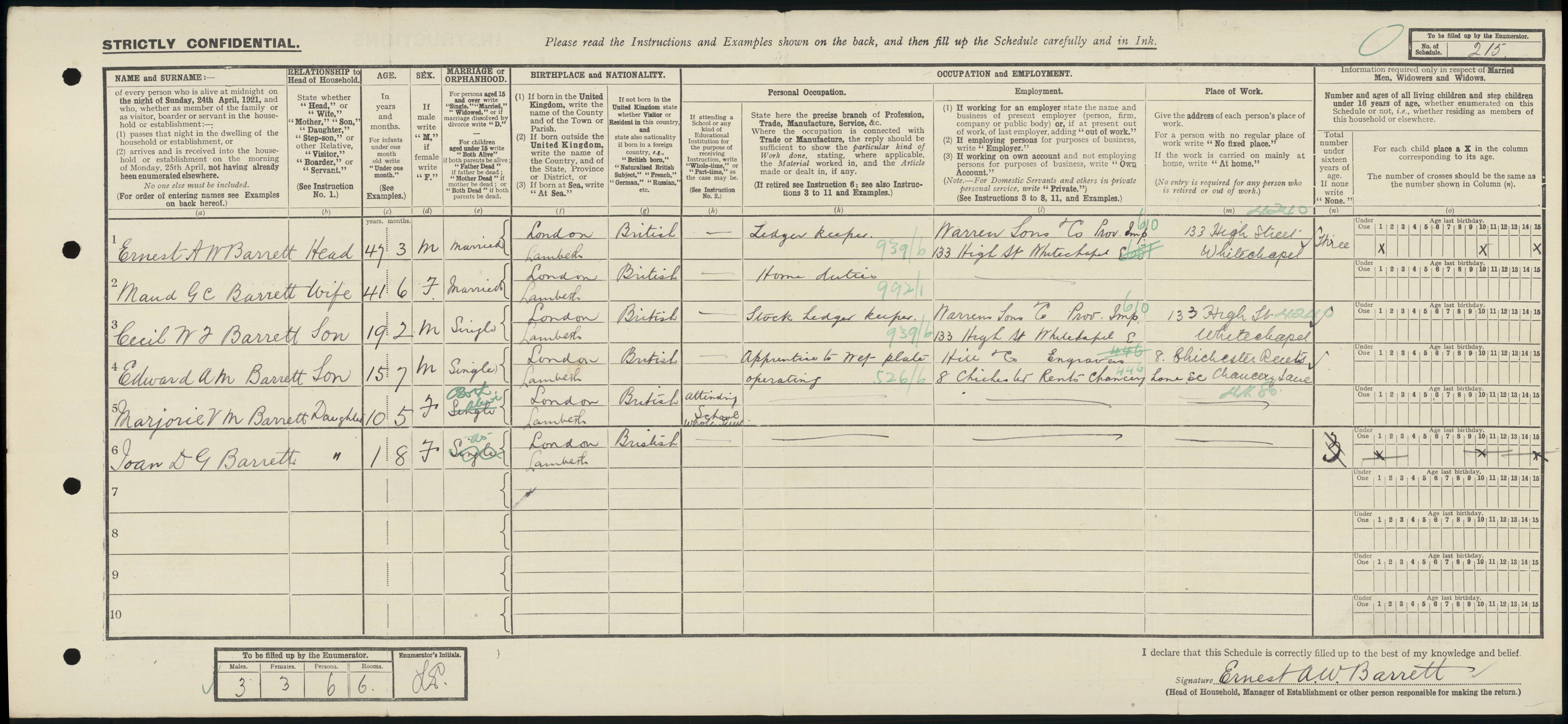 Events • Lived at: 213 Shakespeare Road, 1911, Herne Hill, Surrey, England.