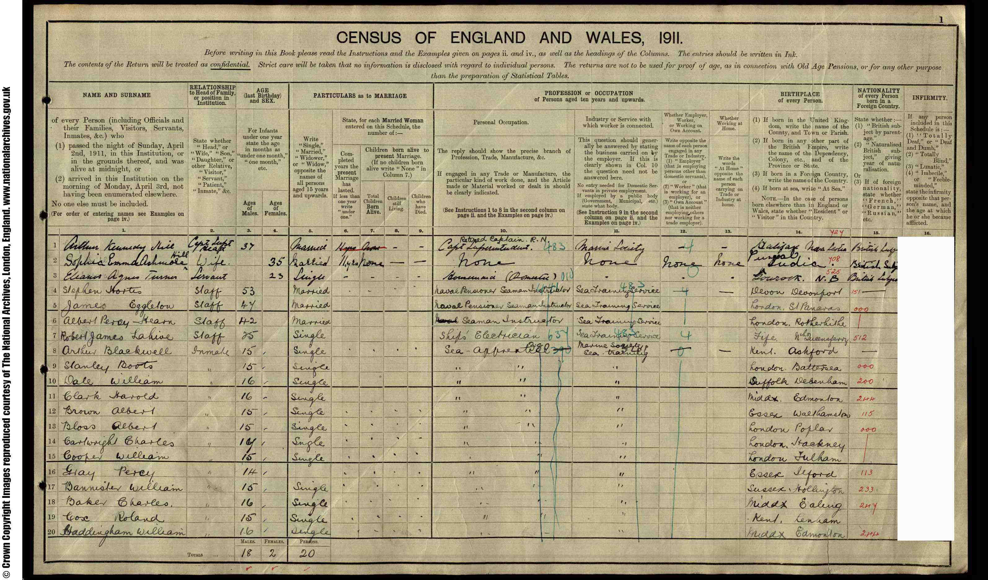 • Lived at: Training Ship, "Warspite," 1911, Dartford, Kent, England.