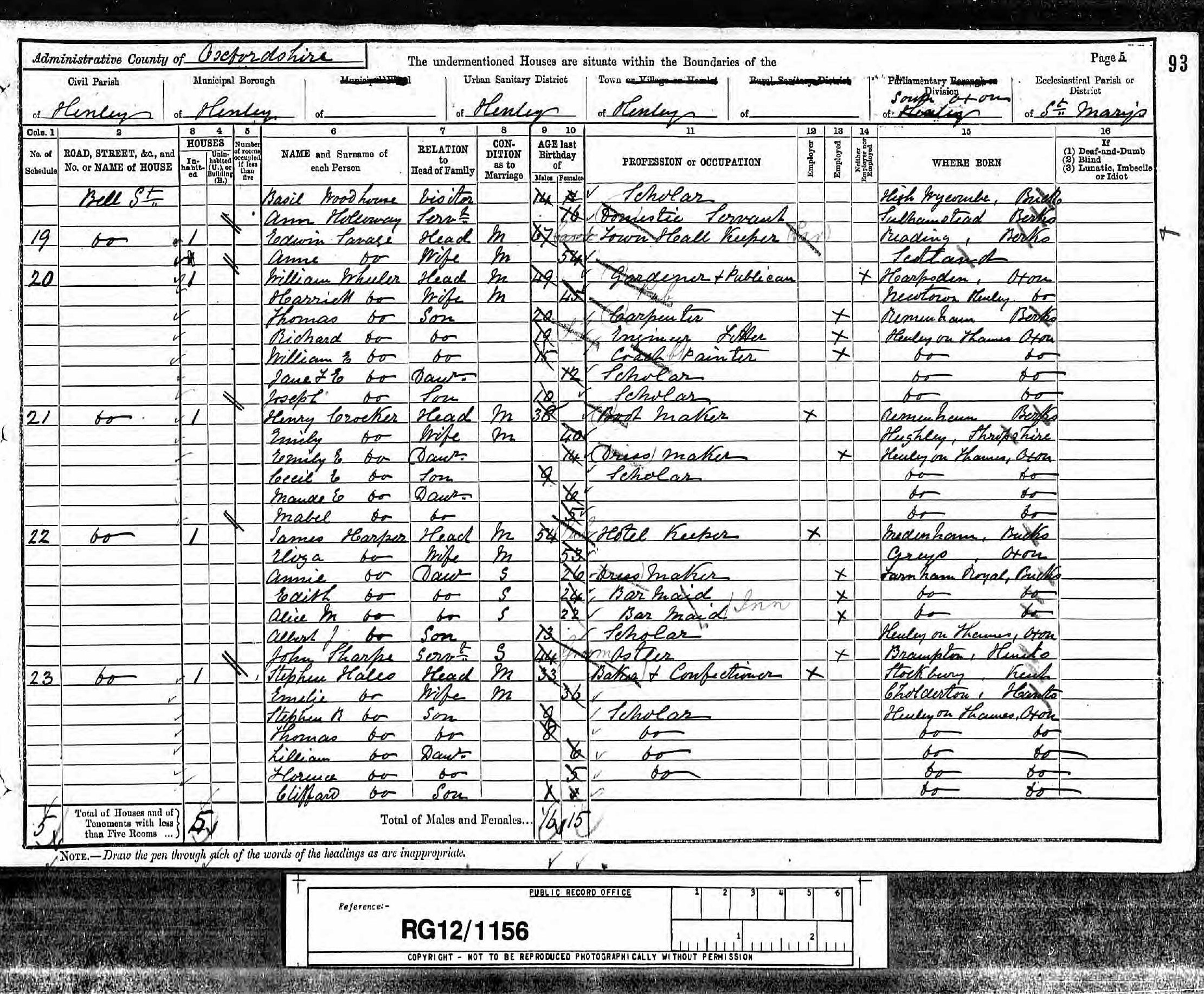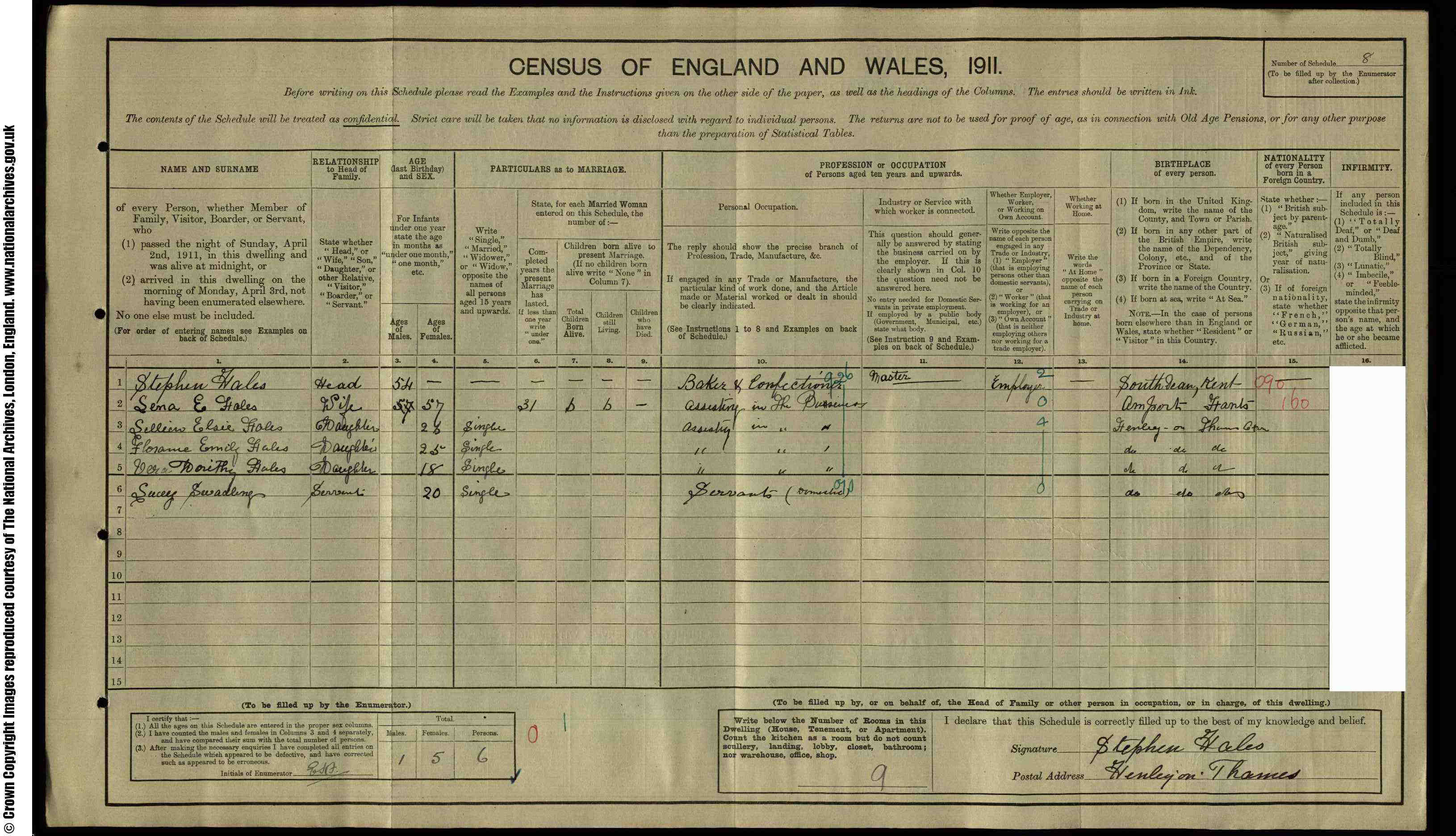 • Lived at: 20 Market Place, 1911, Henley on Thames, Oxfordshire, England. • Occupation: Baker and Confectioner, 1911-1921, Henley.