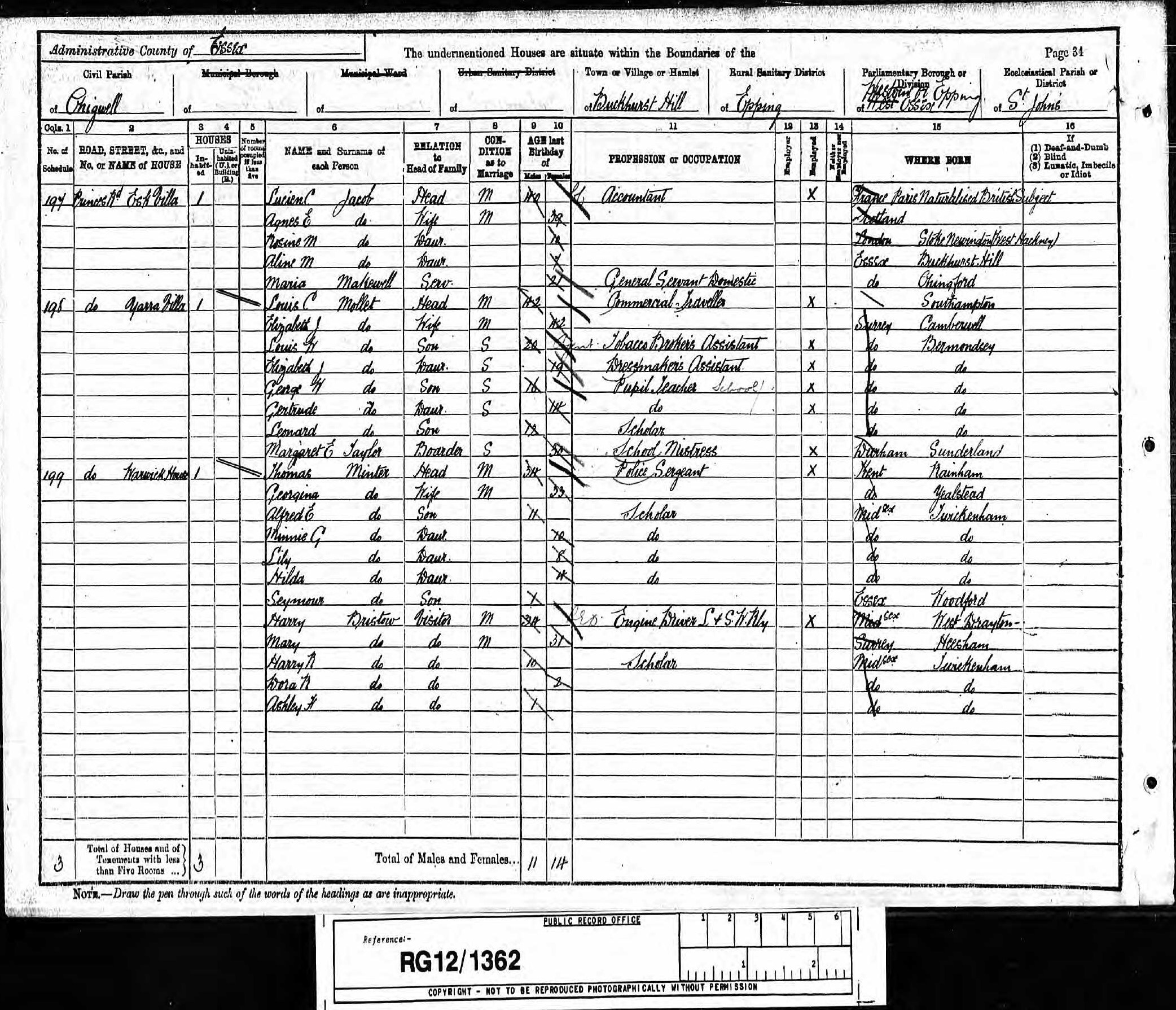 • Lived at: Warwick House, Primrose Street, 1891, Chigwell, Essex. • Lived at: Kashgar Road, 1901, Plumsted, Kent, England. Georgiana married Thomas Minter Sep Q 1878. (Thomas Minter was born circa 1856 and died on 6 May 1928 in Plumsted, Kent, England.) |