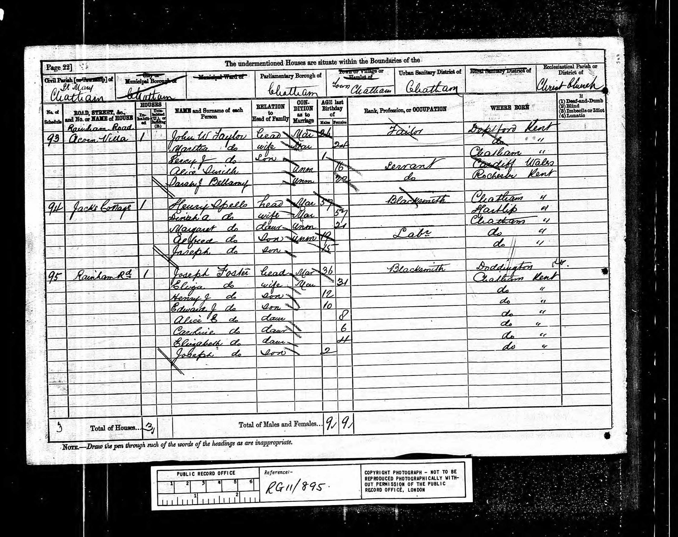 • Lived at: Jacks Cottage, 1871, Gillingham, Kent, England.
