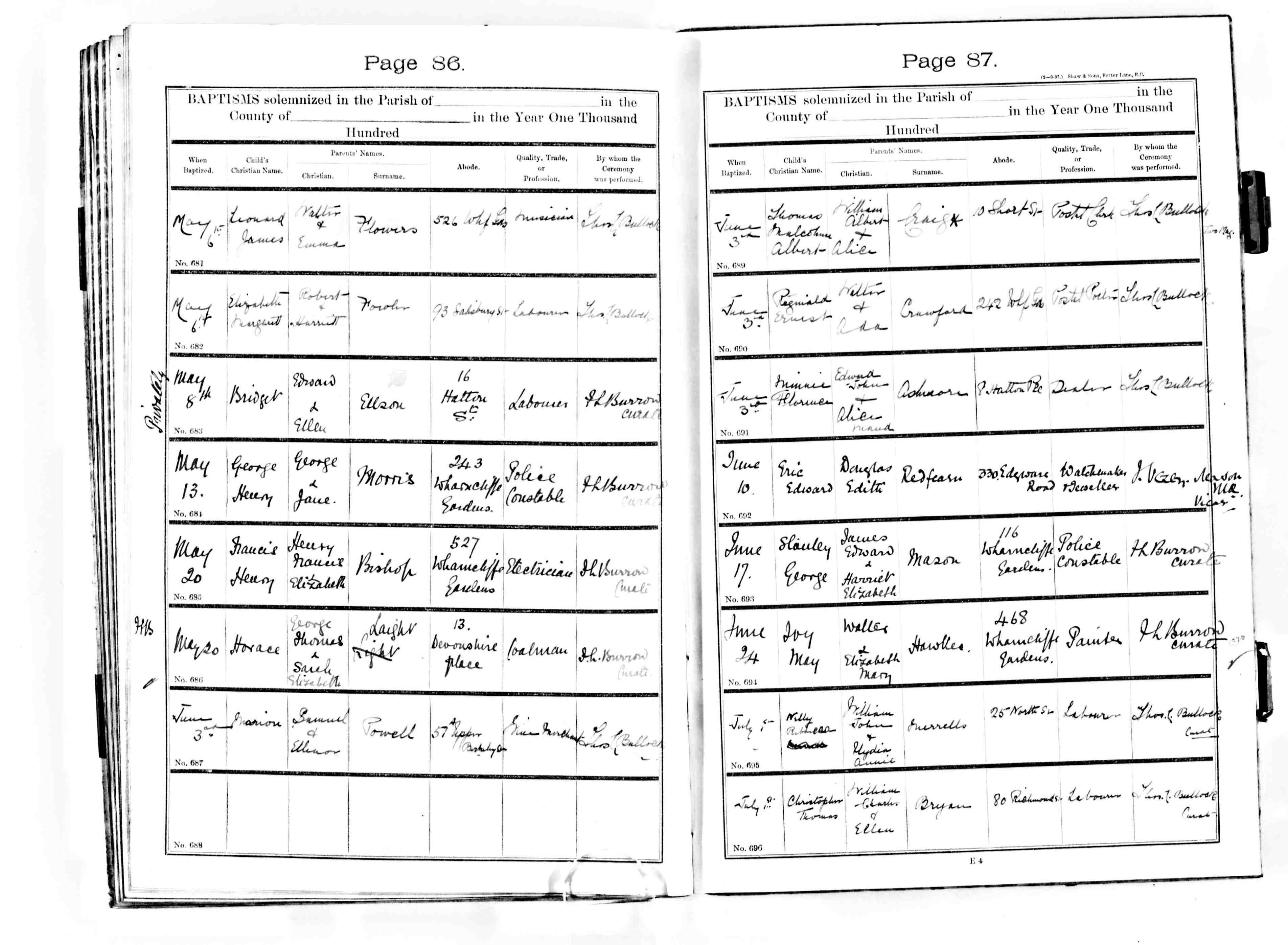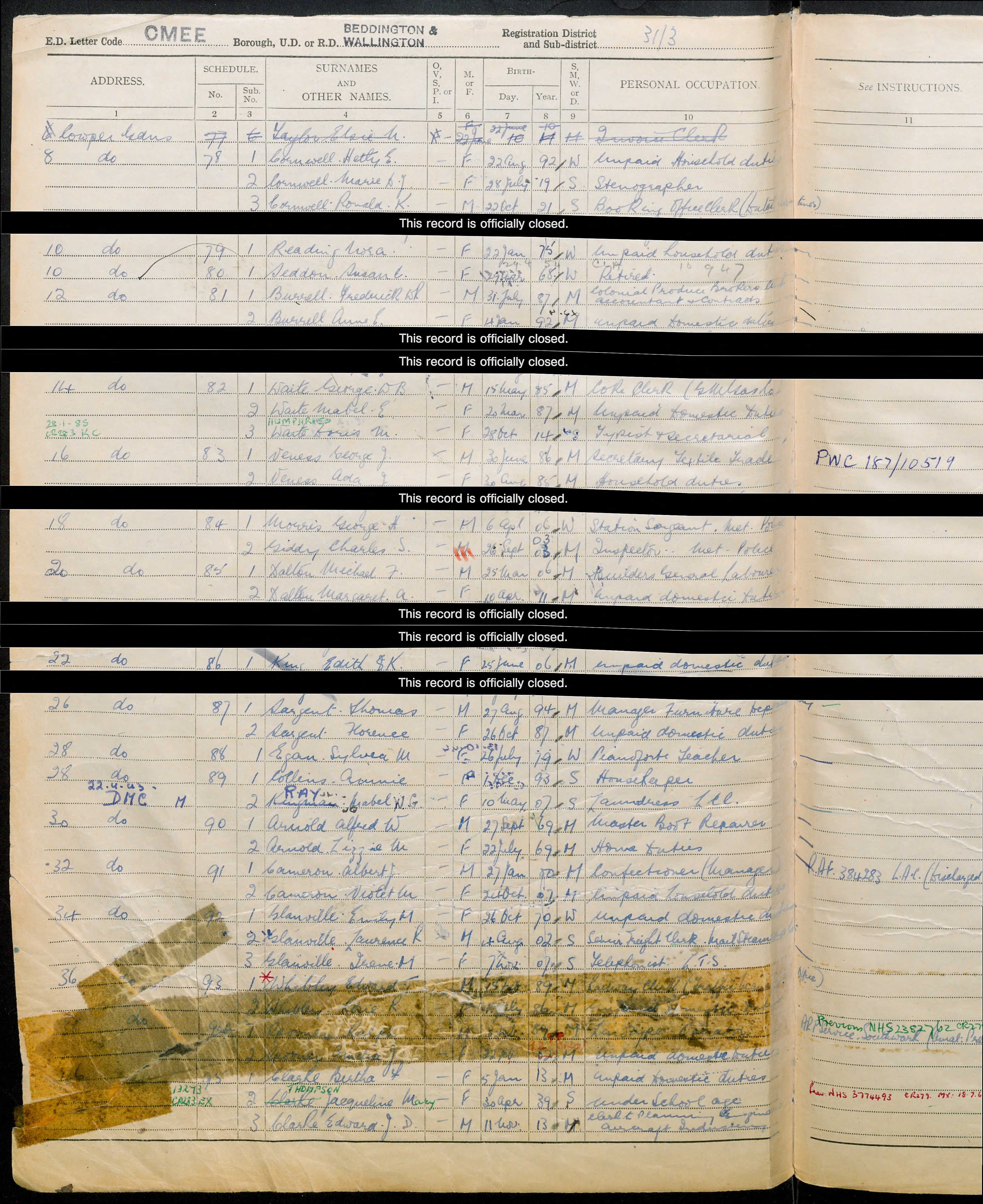 • Occupation: Police Sgt, Metropolitan, 1939, Surrey.