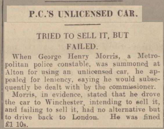 • Court: Driving Unlicenced Car, 1934, Alton, Hampshire, England.