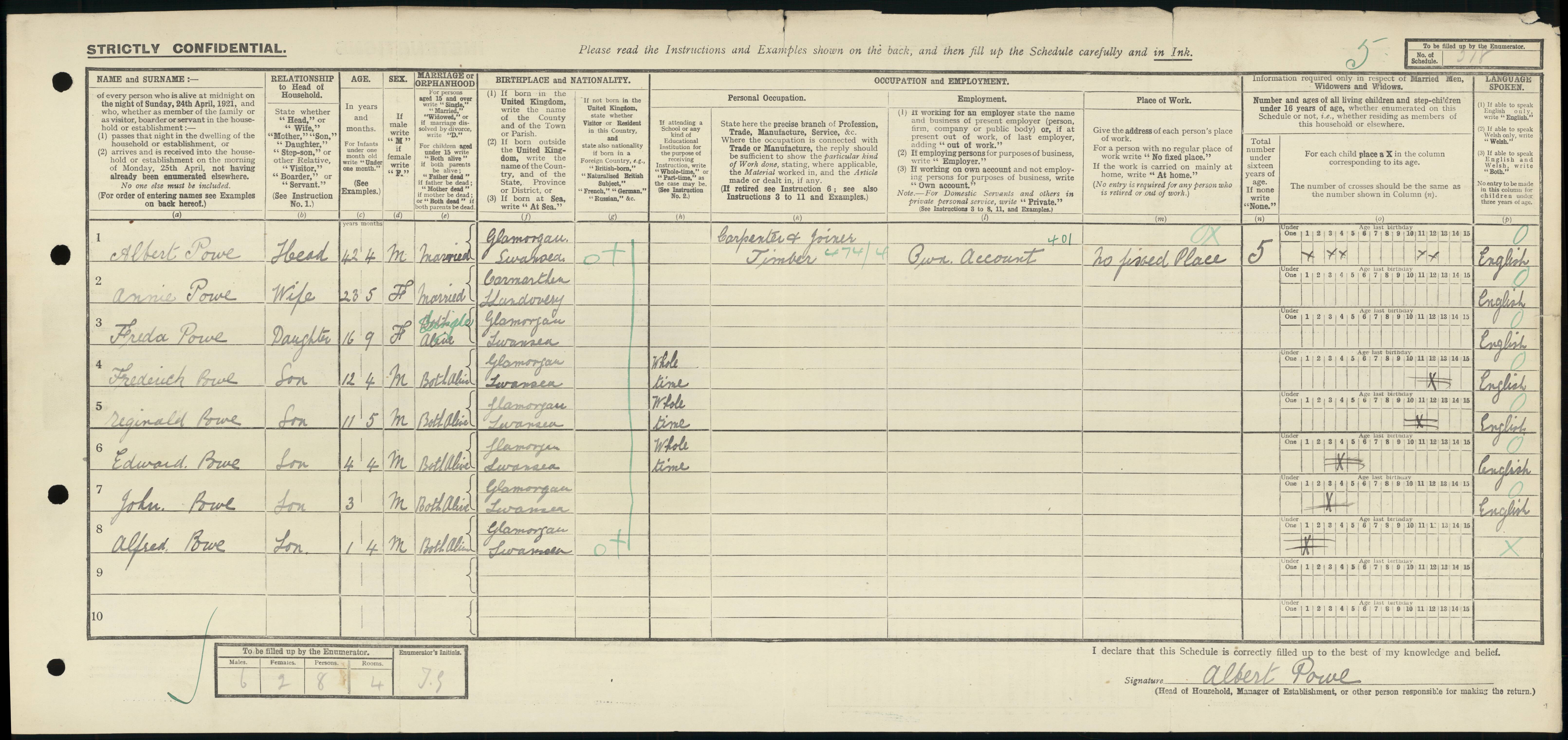 • Lived at: 15 Greenfield Street, 1911-1921, Swansea, Glamorgan, Wales.