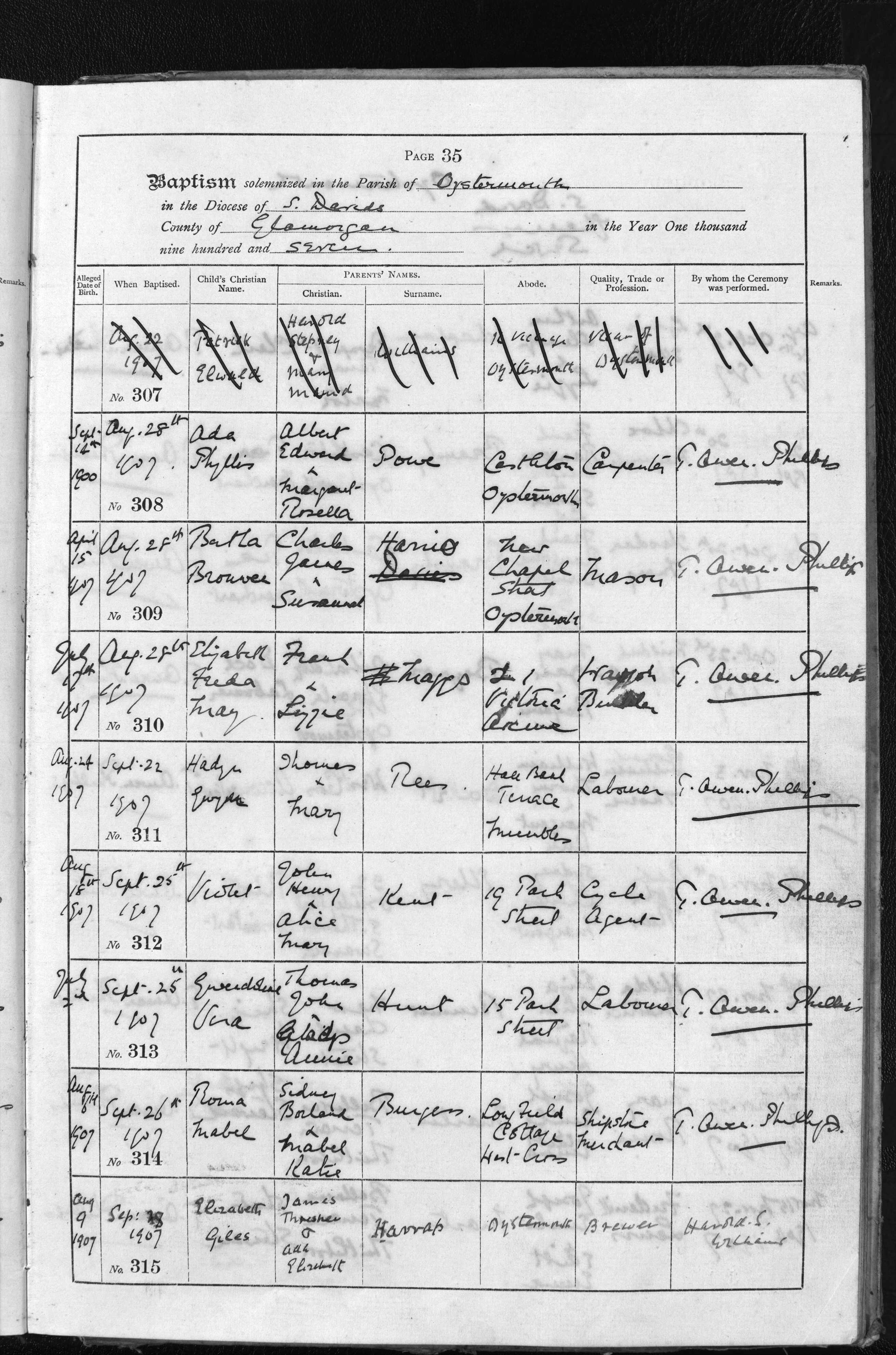 • Lived at: 7 Clarence Terrace, 1901, Swansea, Glamorgan, Wales. 3 • Lived at: 15 Greenfield Street, 1906, Swansea, Glamorgan, Wales.