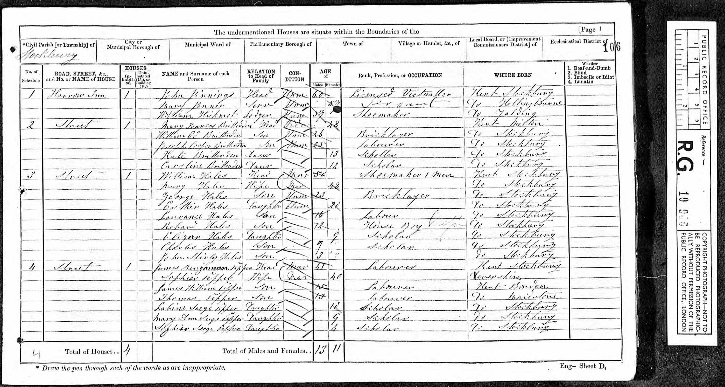 • Lived at: Street, 1861, Stockbury. • Occupation: Master Shoe Maker, 1861, Stockbury.