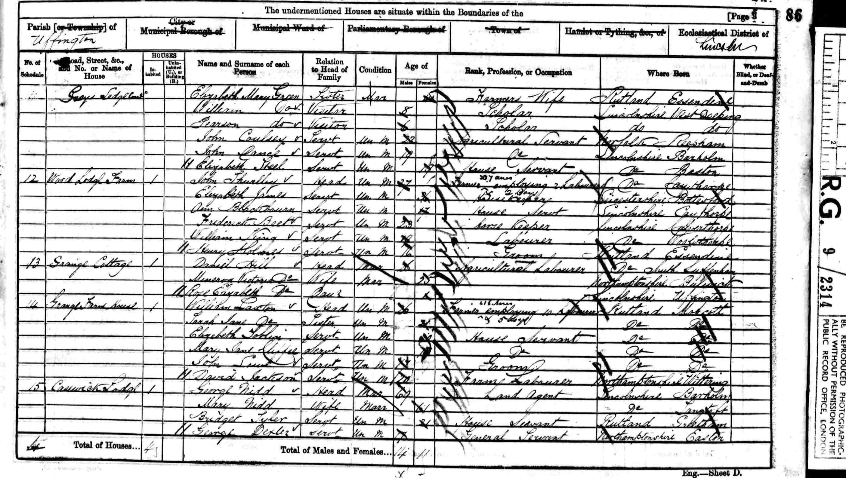 • Lived at: Casswick Lodge, 1861, Uffington, Lincolnshire, England. 6 • Occupation: Land Agent, 1861, Uffington, Lincolnshire, England. 6