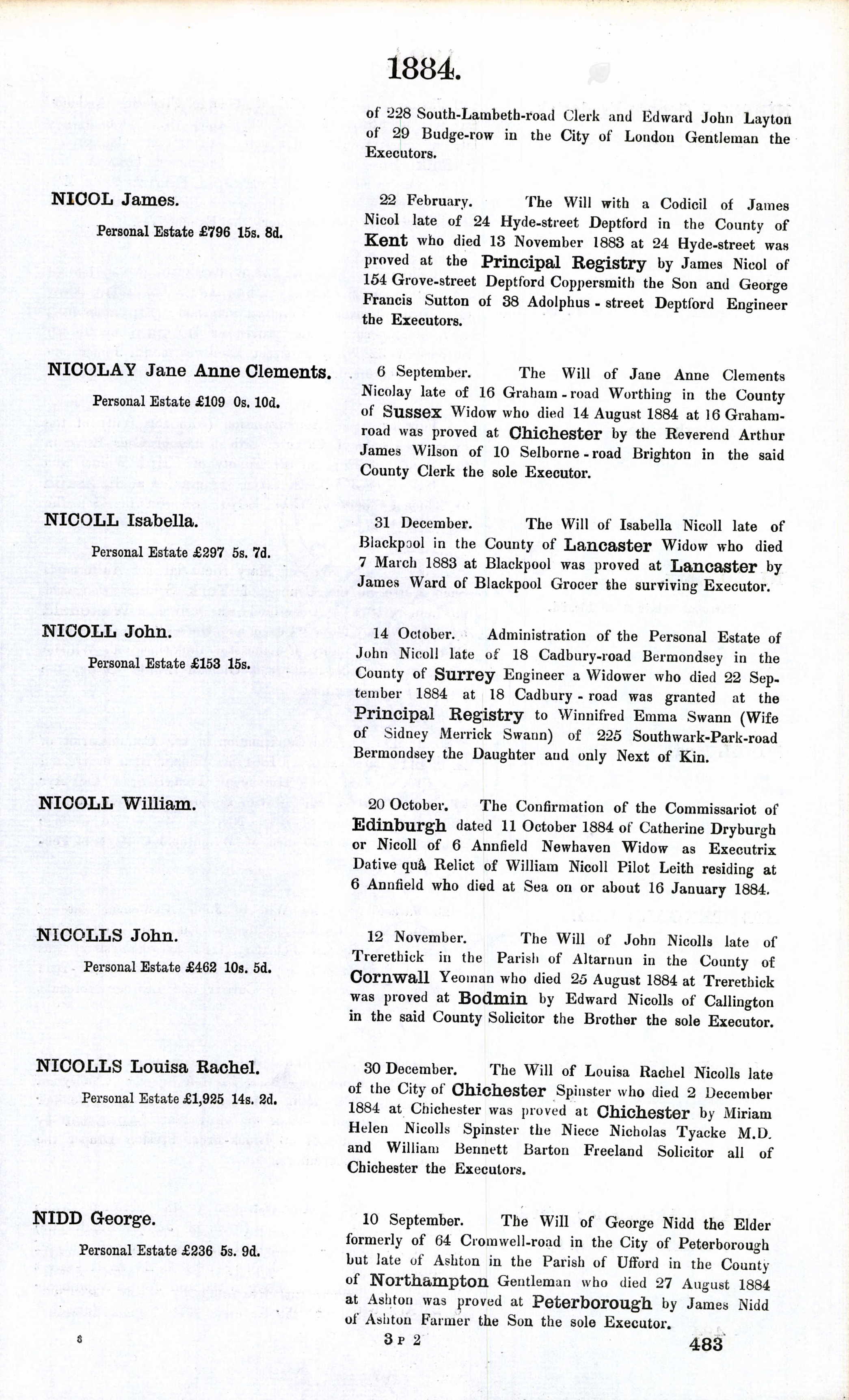 National Burial Index, NBI. Cit. Date: 30 Dec 2007. Cit. ID: NBI George Nidd 1884. Surety: 3. National Burial index records