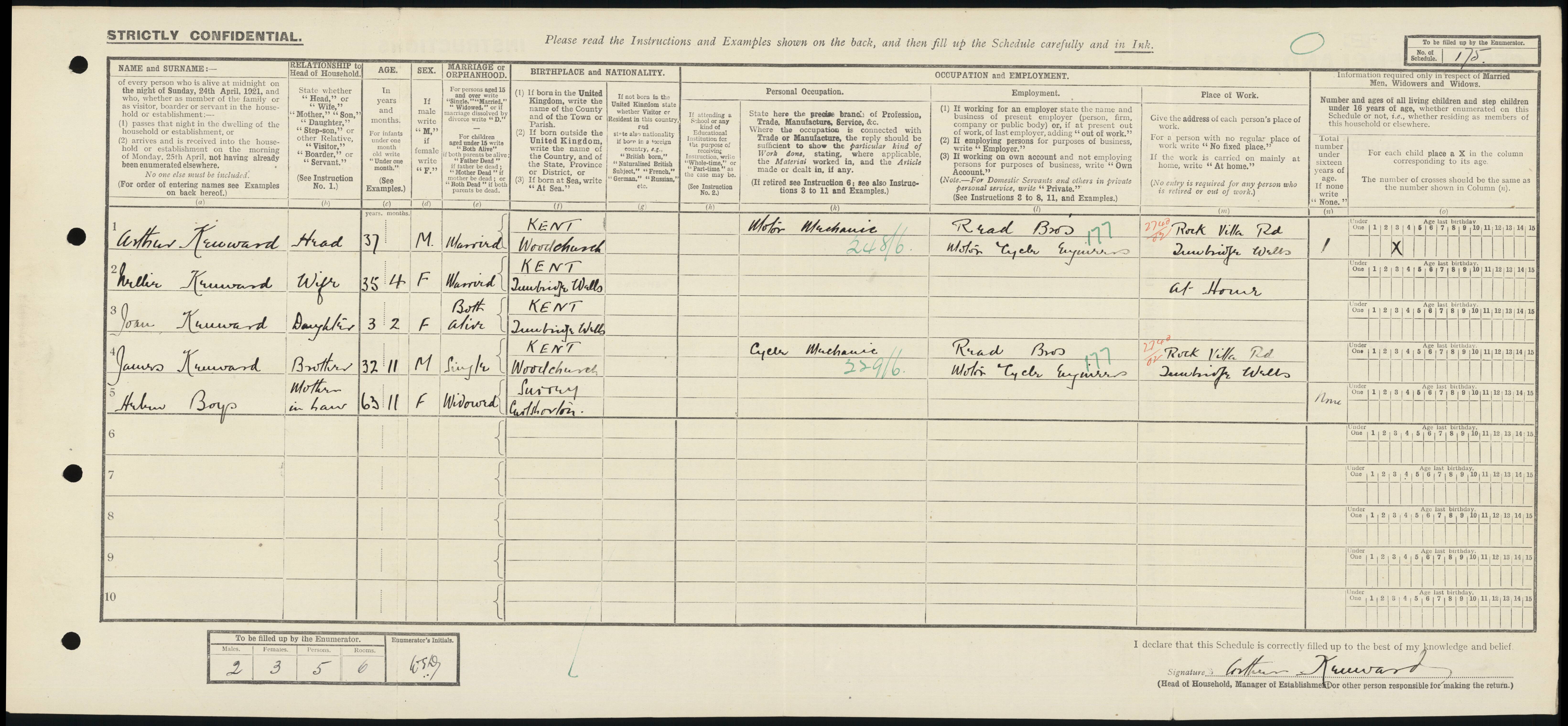 • Lived at: 23 Standen St, 1911, Tunbridge Wells, Kent, England.