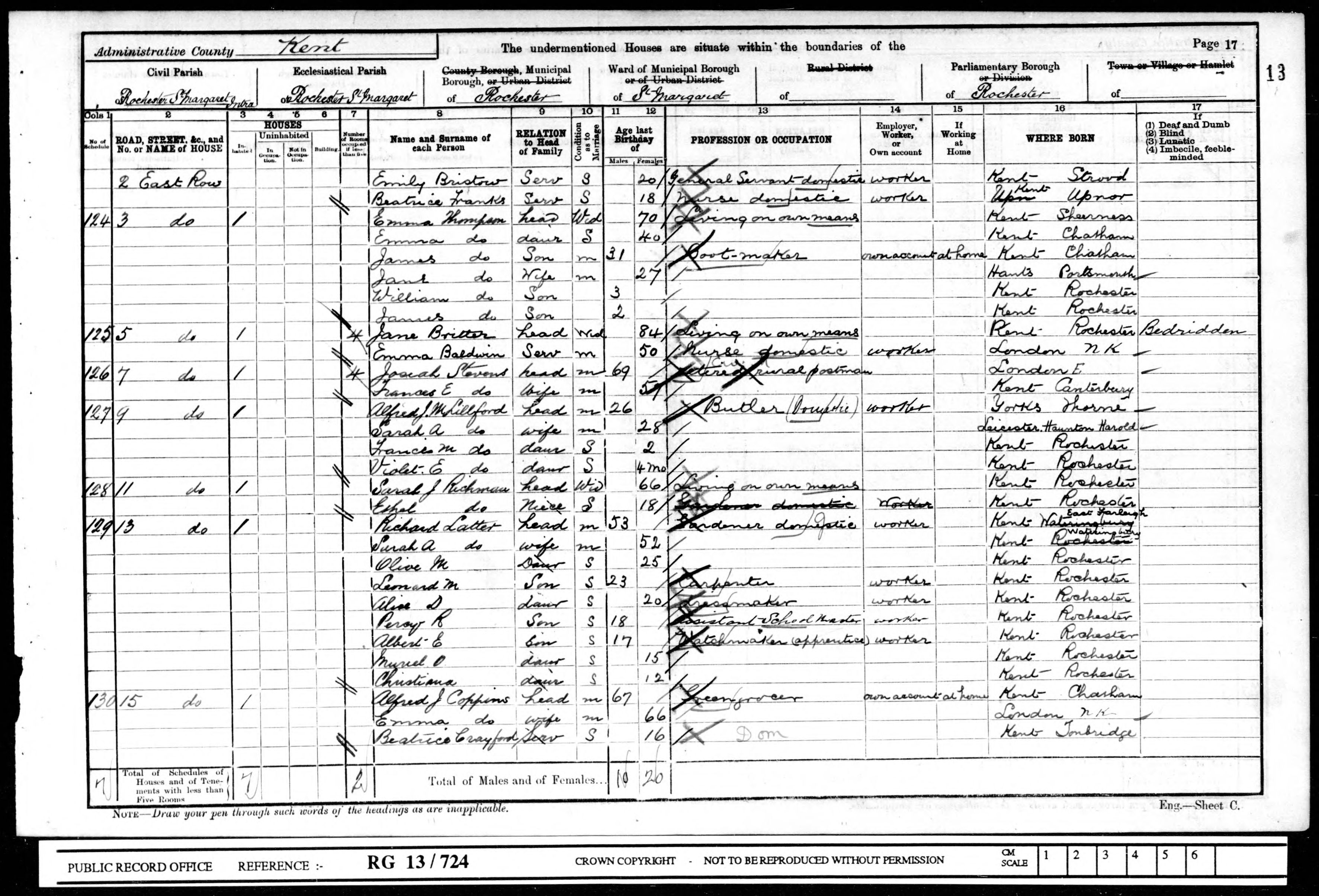 Events • Visited: 2 Larkins Villa, 1891, Capel, Kent, England. 2 Staying with grandparents during 1891 census • Lived at: 15 East Row, 1901, Rochester, Kent, England.