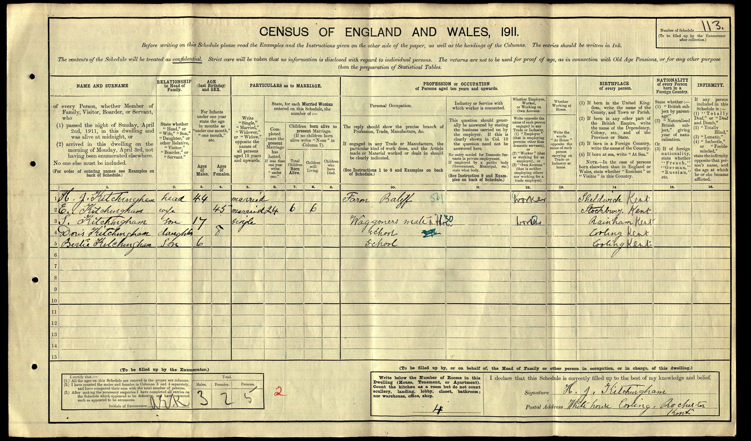 • Occupation: Farm Bailiff, 1911, High Halstow, Kent, England.