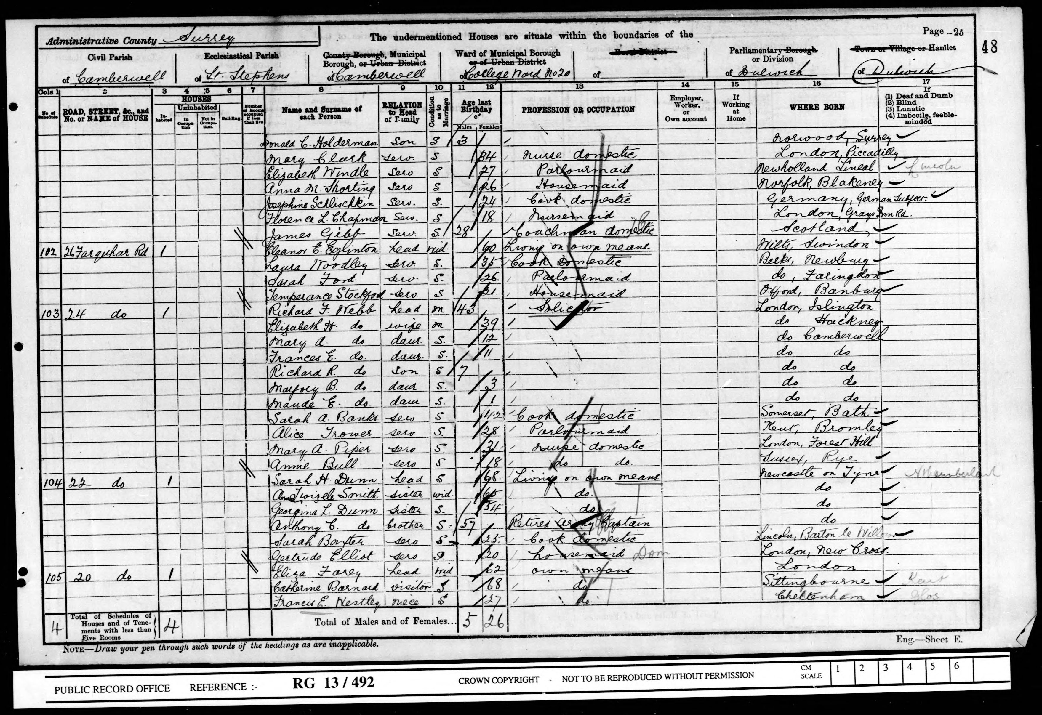 • Visited: Farquar Street, 1901, Camberwell, Surrey, England.