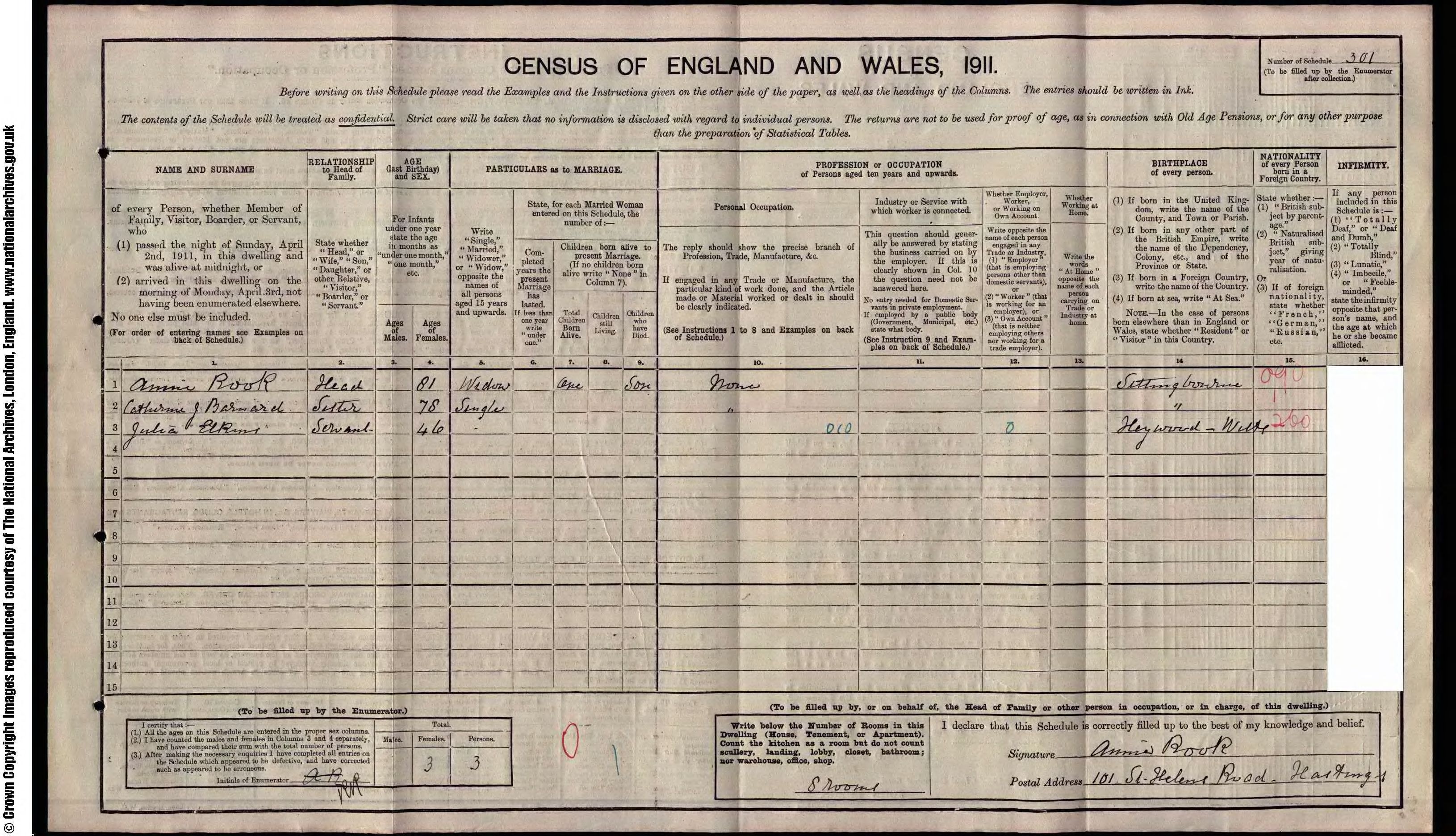 • Lived at: 101 St Helens Road, 1911, Hastings, Sussex, England. |
