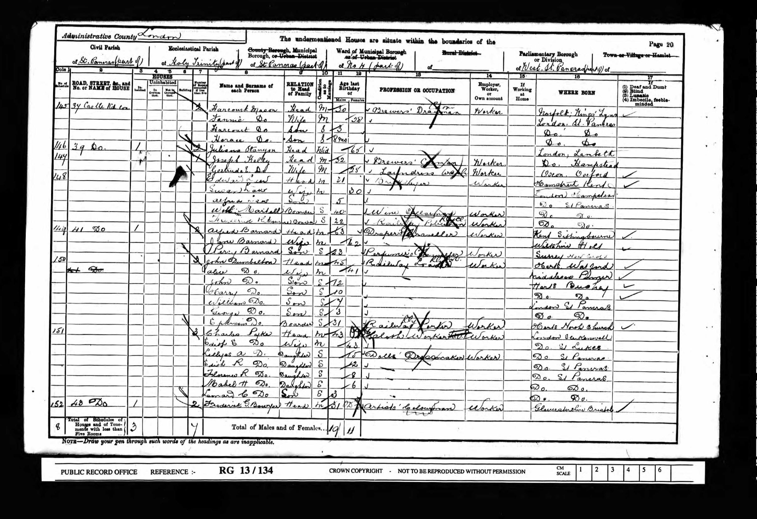5 (1881 English and Welsh Census(London, TNA/Ancestry.co.uk, 1982) , Web site showing copies of original enumerator schedules) ID: CEN 1881, CEN 1881 rg11 1730 page 58. Repository: Not Given. Cit. Date: 25 Feb 2007. Cit. ID: CEN 1881 rg11 1730 page 58. Surety: 2.