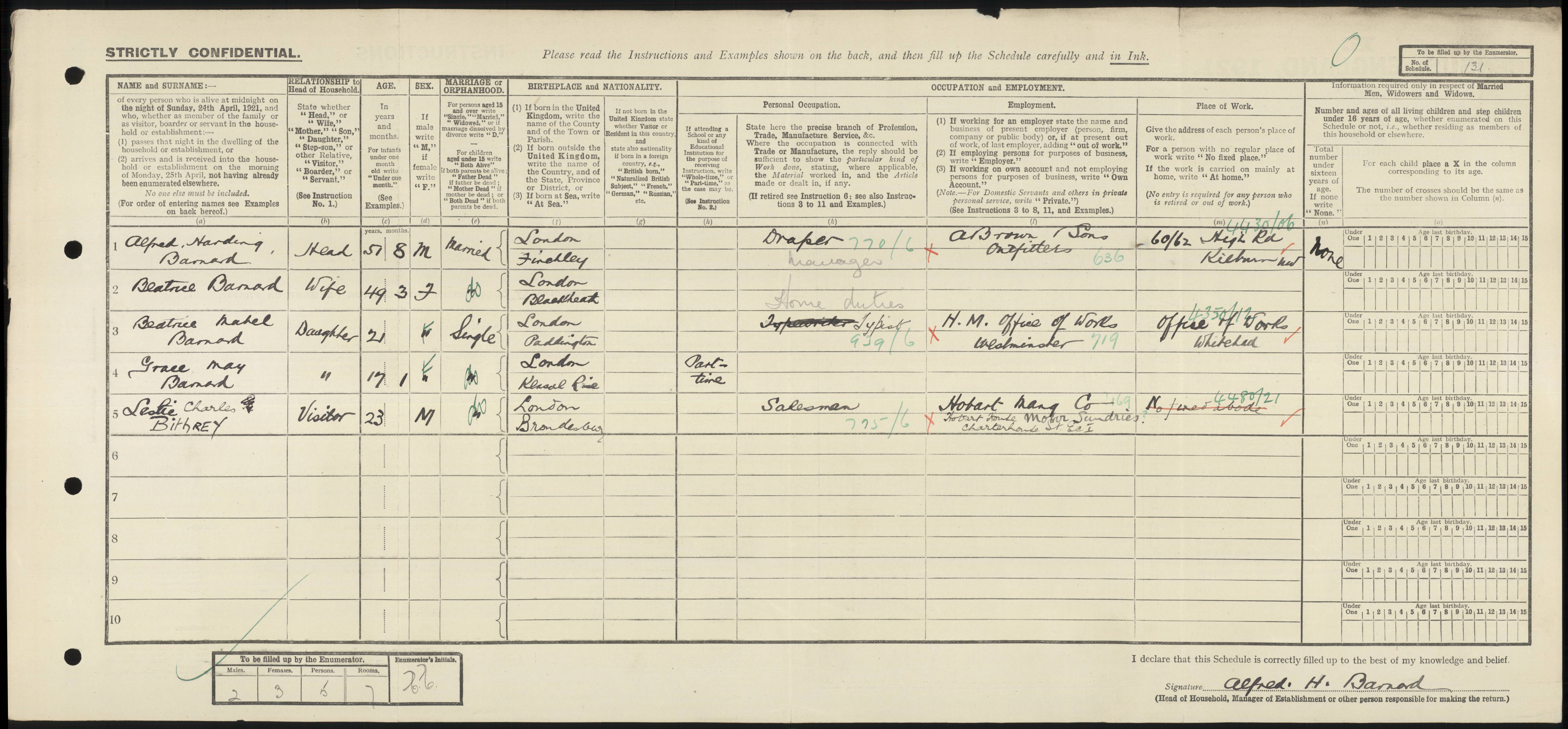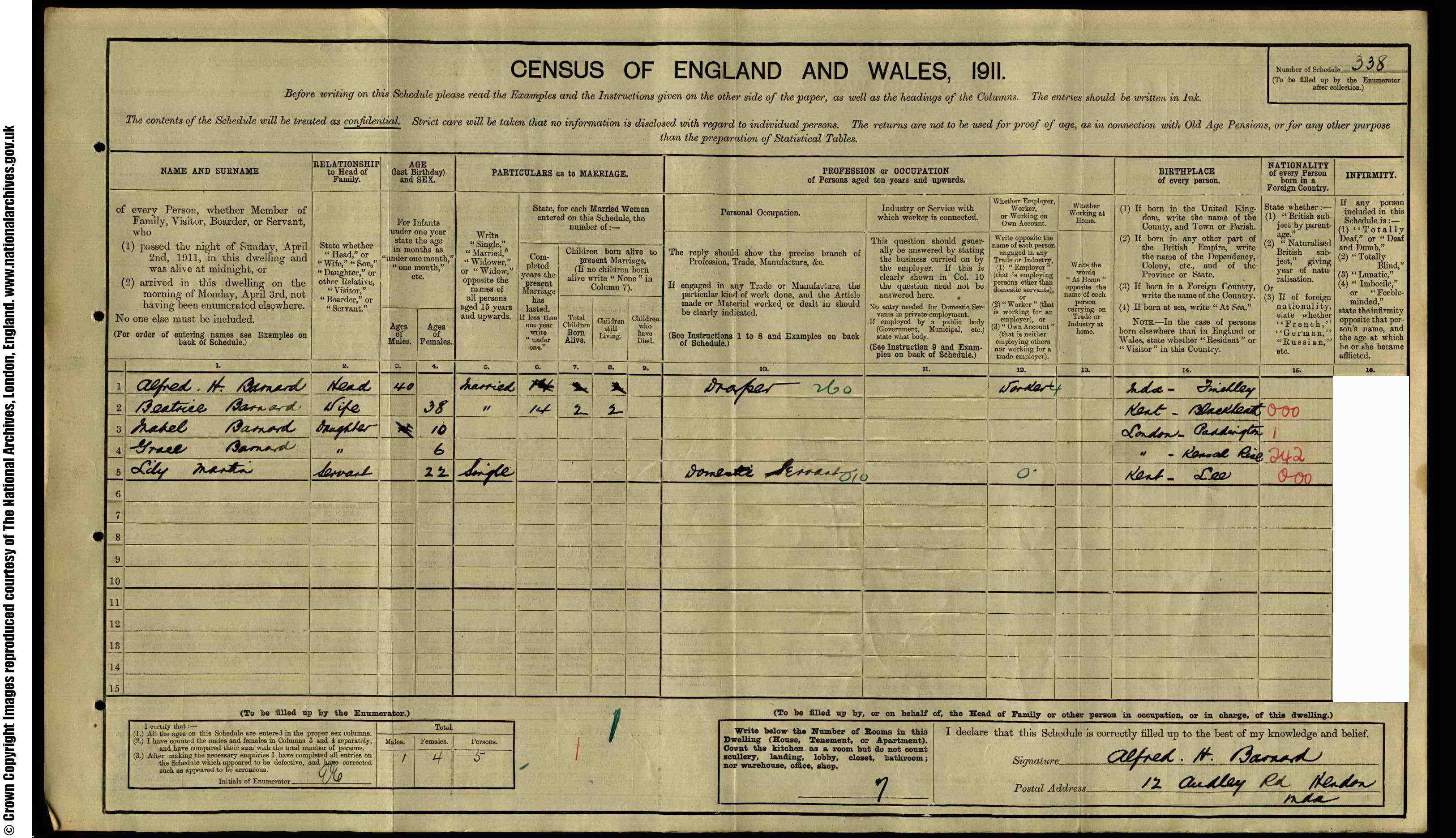 • Lived at: 12 Audley Street, 1911, Hendon, Middlesex, England. • Occupation: Draper, 1911, Hendon, Middlesex, England.