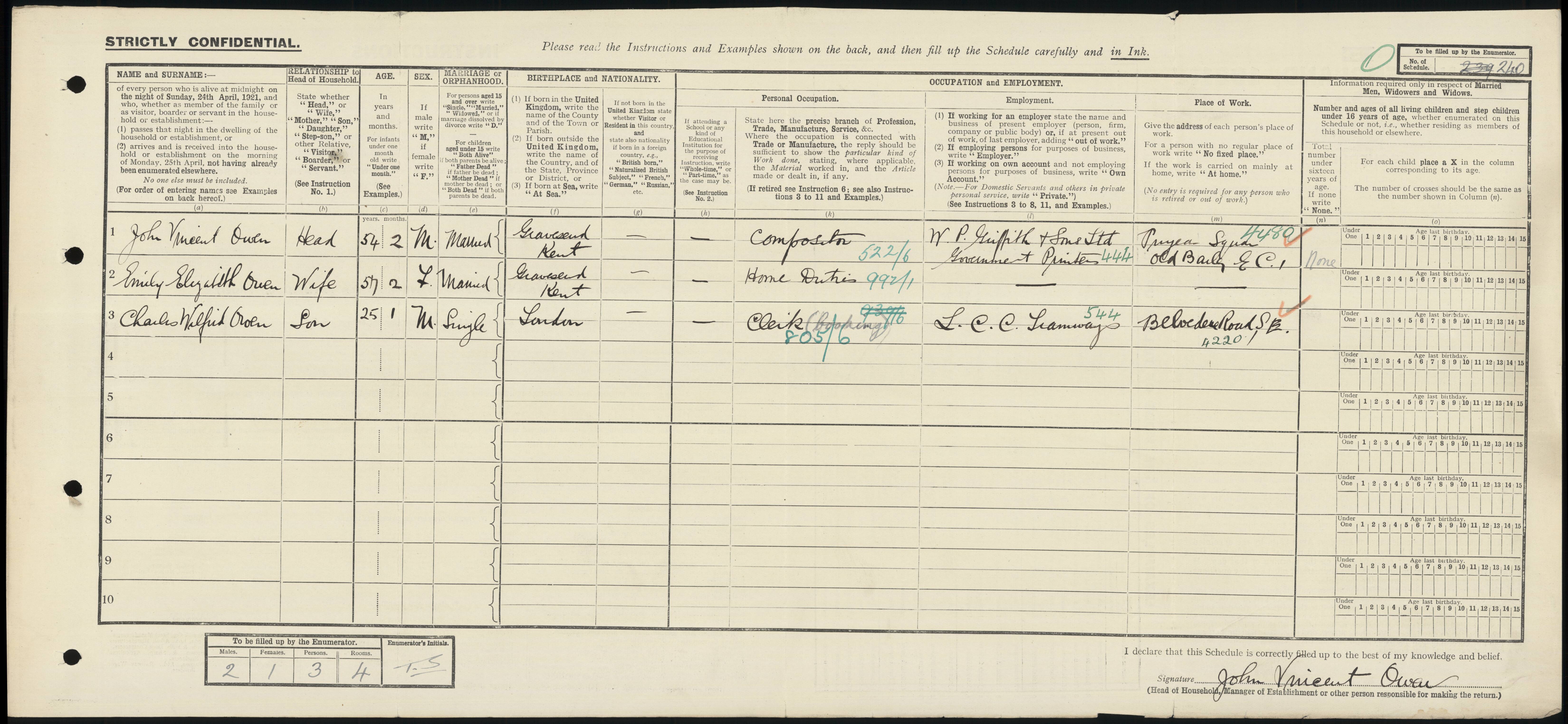 Events • Occupation: Clerk, 1911, Southwark, Surrey, England. Junior Clerk Gold Miney Co