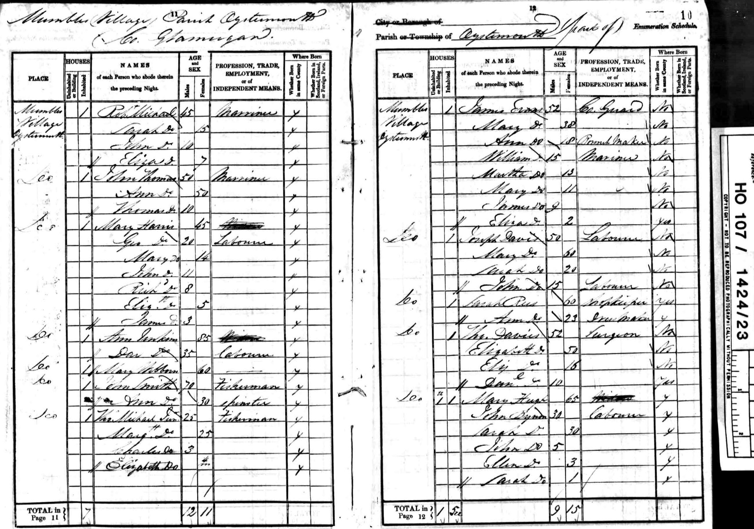 Events • Lived at: Mumbles VIllage, 1841, Oystermouth, Glamorgan, Wales.