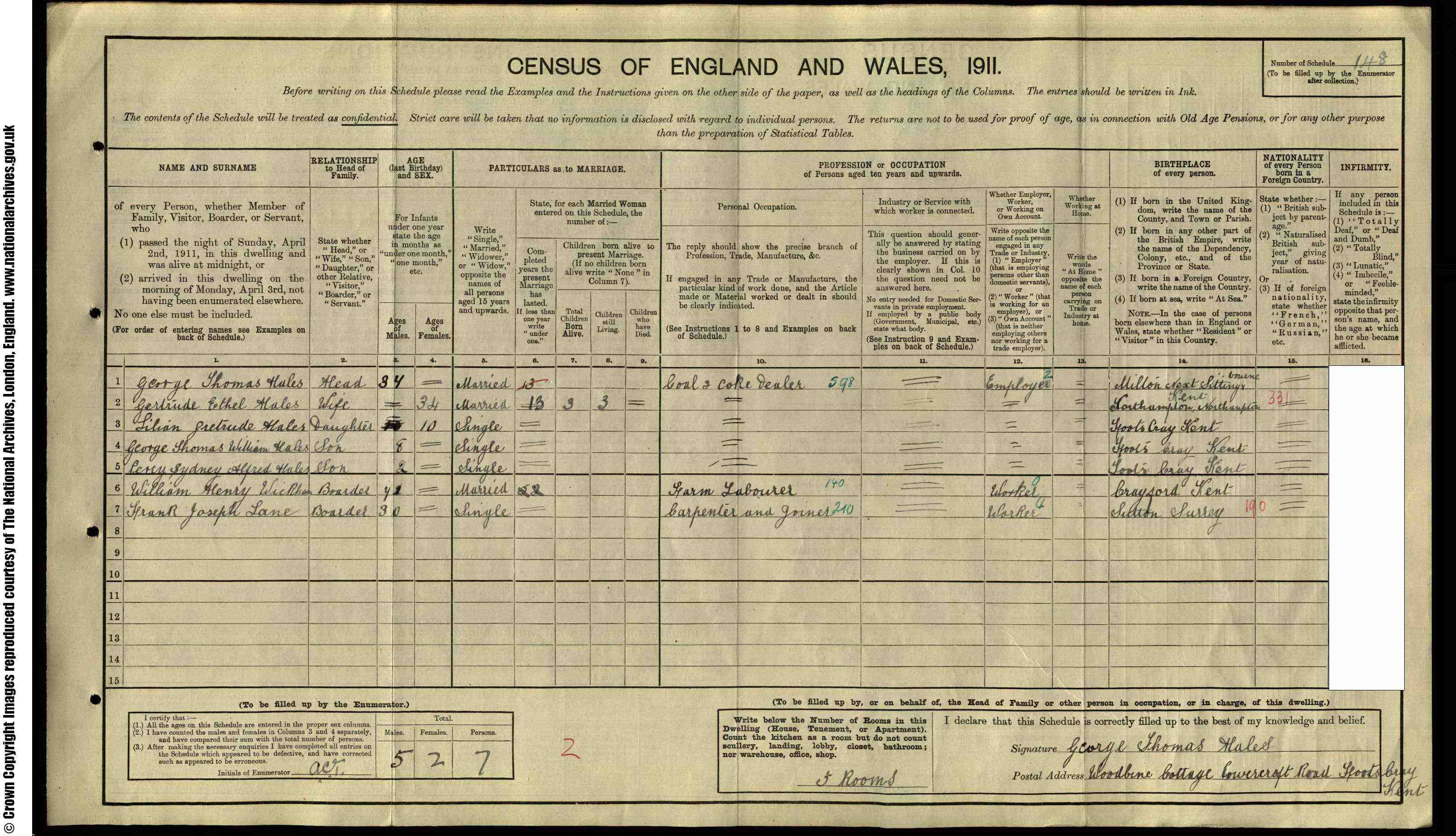 • Lived at: Woodbine Cottage Lowercroft Road, 1911. • Occupation: Coal and Coke Dealer, 1911, Kent, England.