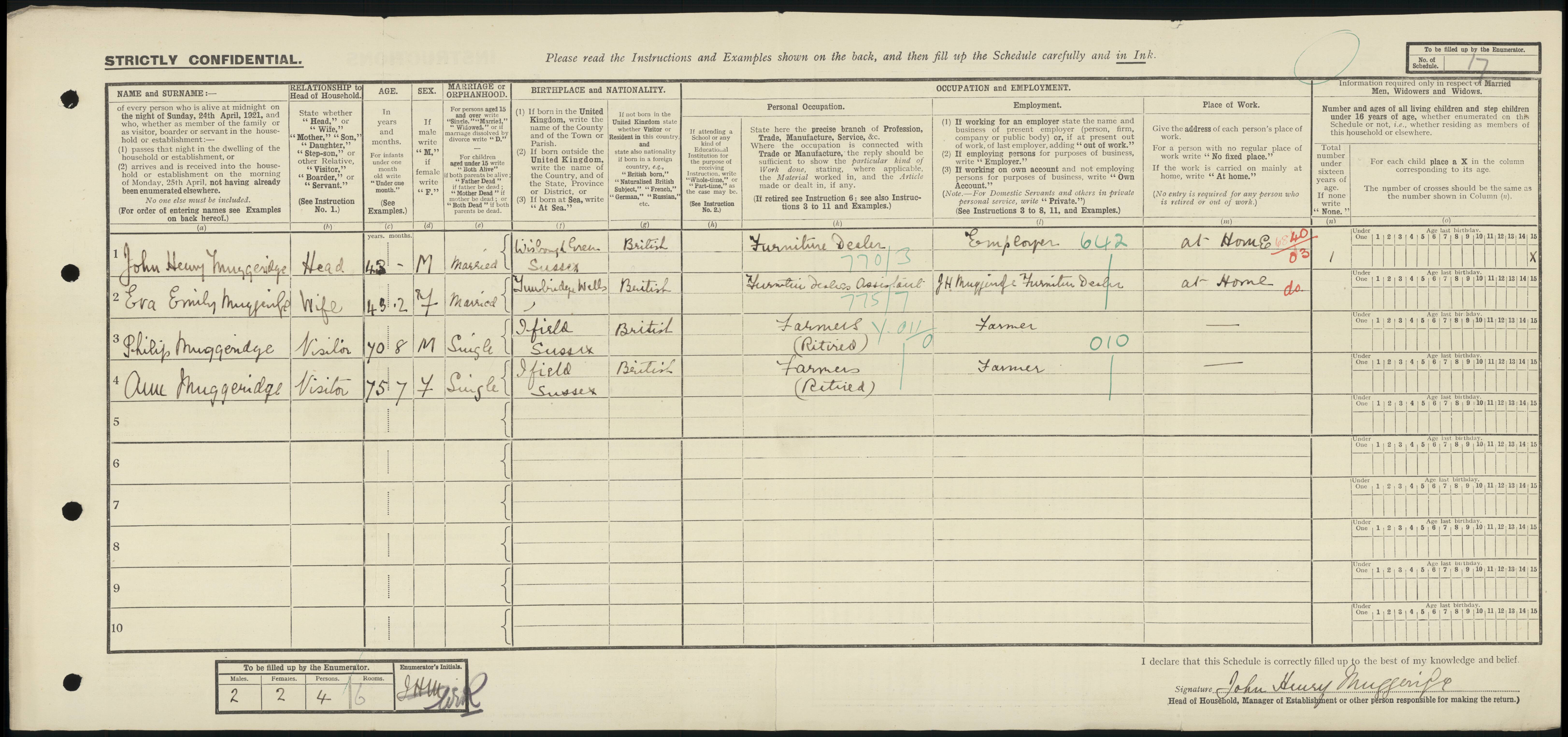 • Lived at: 17 the Broadway, 1921, West Worthing, Worthing, Sussex, England. • Occupation: Baker Confectioner, 1939, Worthing, Sussex, England. • Probate: 1564 pounds, 1947, Worthing, Sussex, England. Eva married John Henry Muggeridge on 13 Dec 1903 in Heene, Sussex. (John Henry Muggeridge was born on 22 Jun 1879 in Wisborough Green, Sussex, England and died on 11 Jun 1947.) |