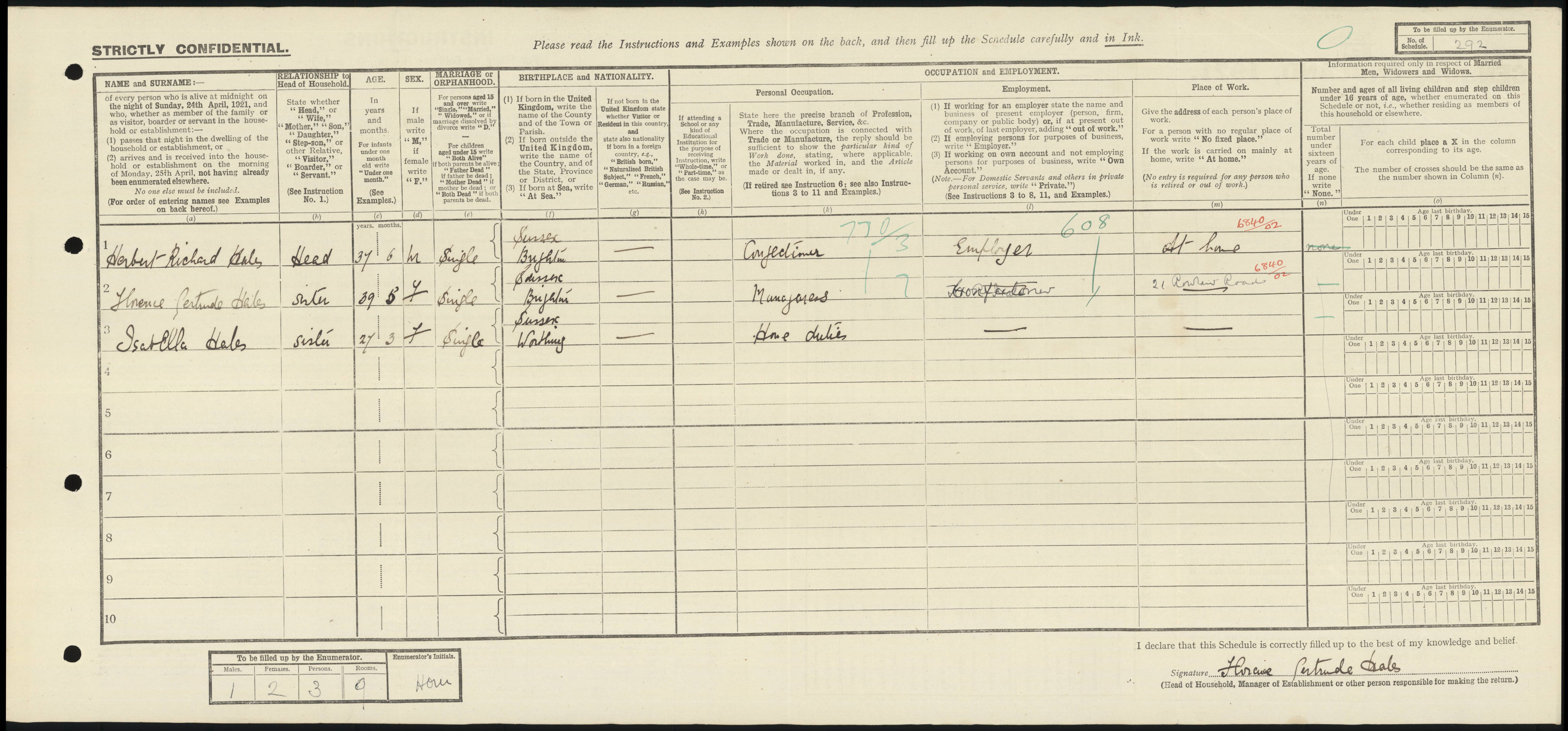 • Lived at: 21 Rowland Road, 1911, Worthing, Sussex, England.