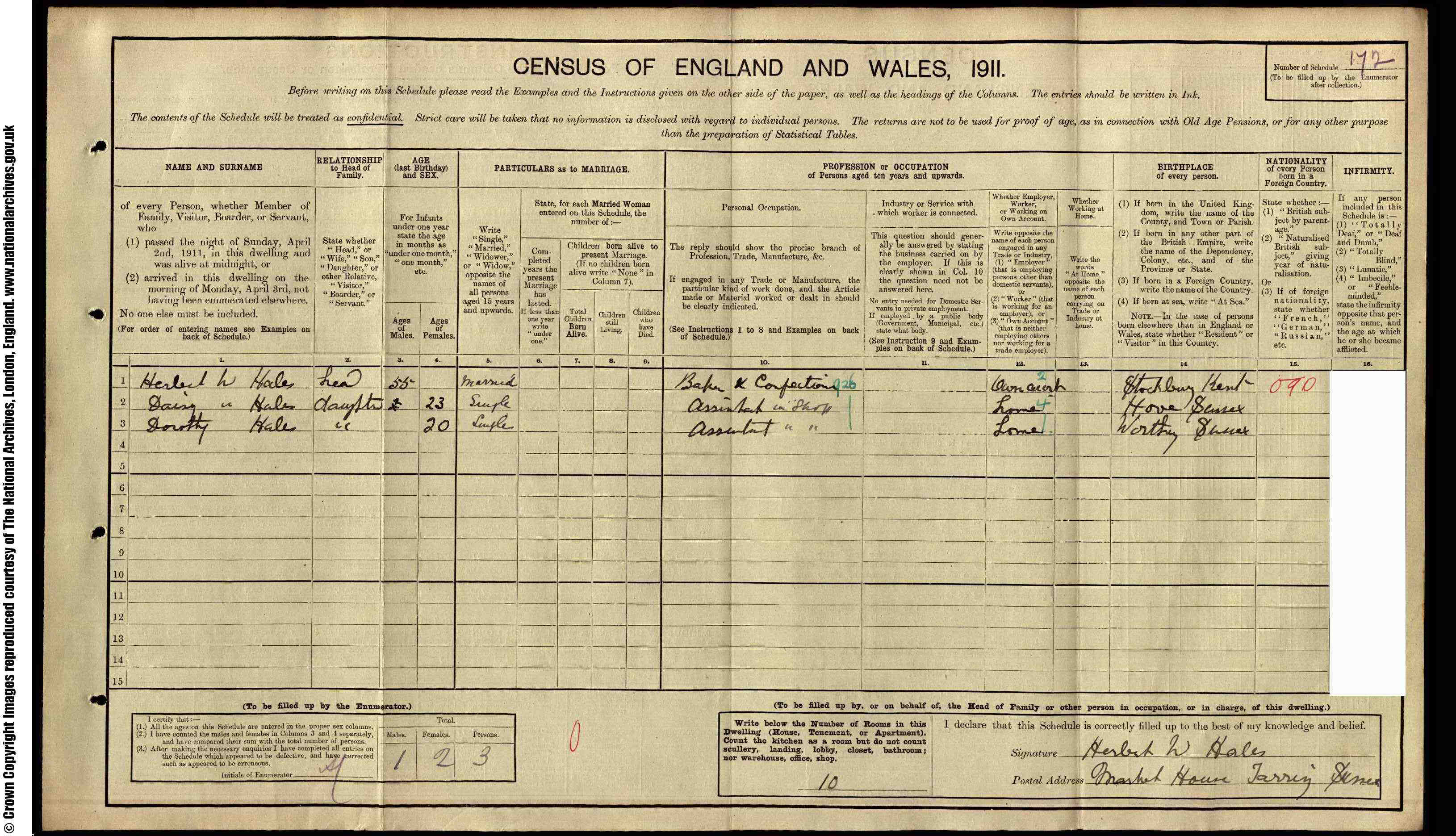• Lived at: Market House, 1911, East Preston.