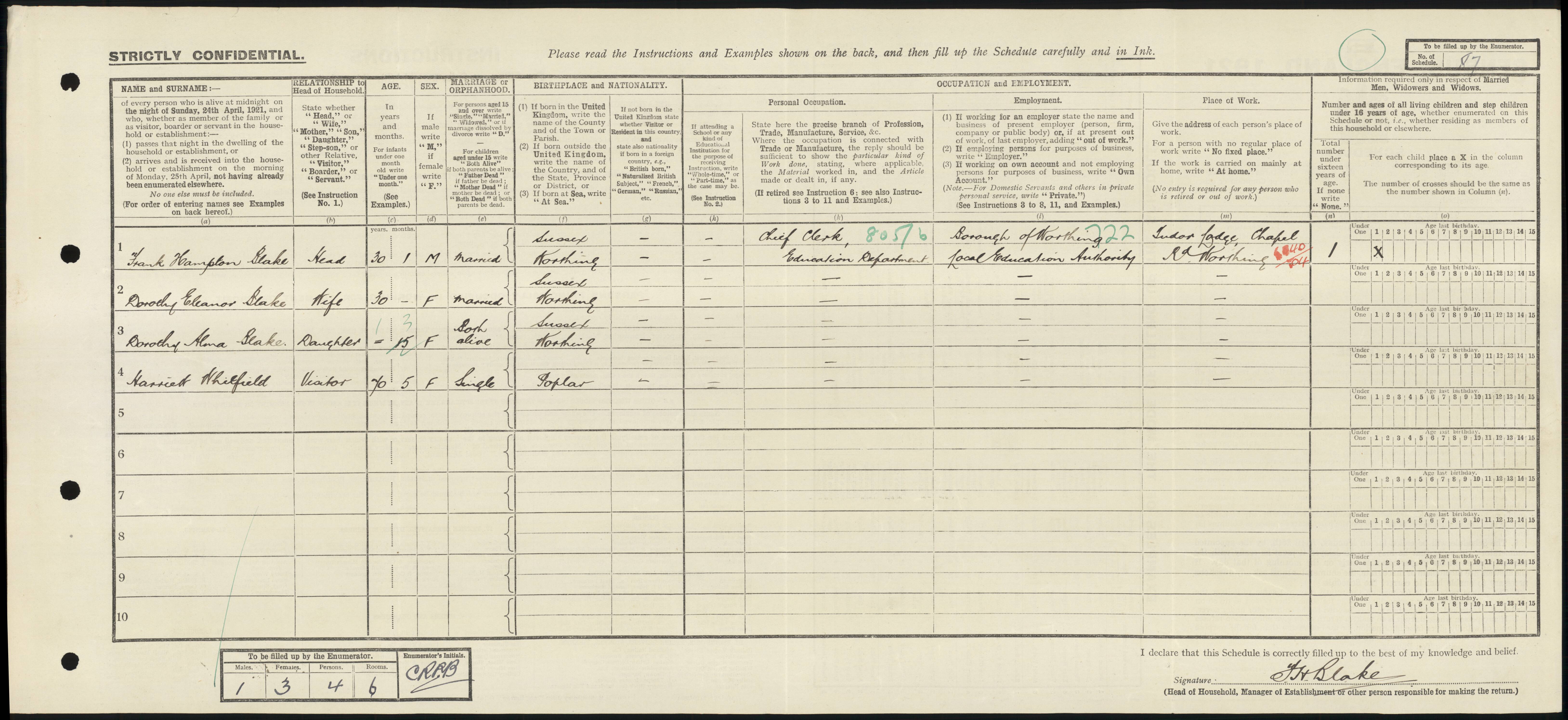 • Lived at: 19 St Matthew's Road, 1921, Worthing, Sussex, England. • Lived at: 21 Rowlands Road, 1939, Worthing, Sussex, England. • Lived at: 98 Rowlands Road, 1981, Worthing, Sussex, England. Dorothy married Frank Hampton Blake Mar Q 1915 in East Peckham, Kent, England. (Frank Hampton Blake was born in 1891 in Worthing, Sussex, England and died before 1939.) |