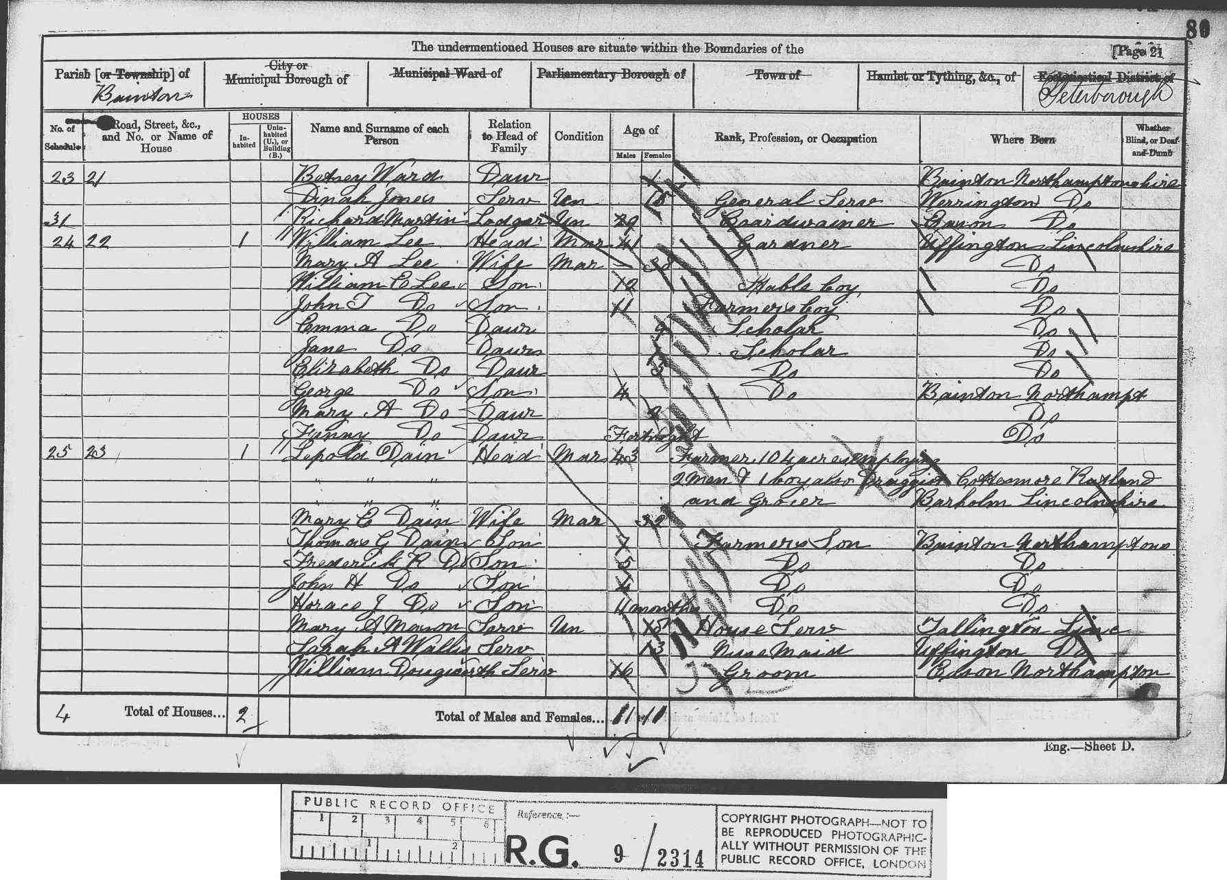 • Lived at: Bainton, 1861, Lincolnshire, England.