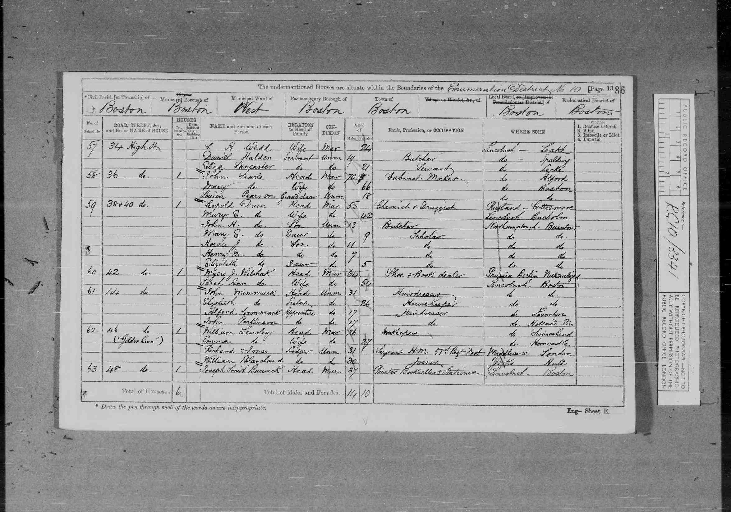 • Lived at: 38 and 40 High Street, 1871, Boston, Lincolnshire, England.