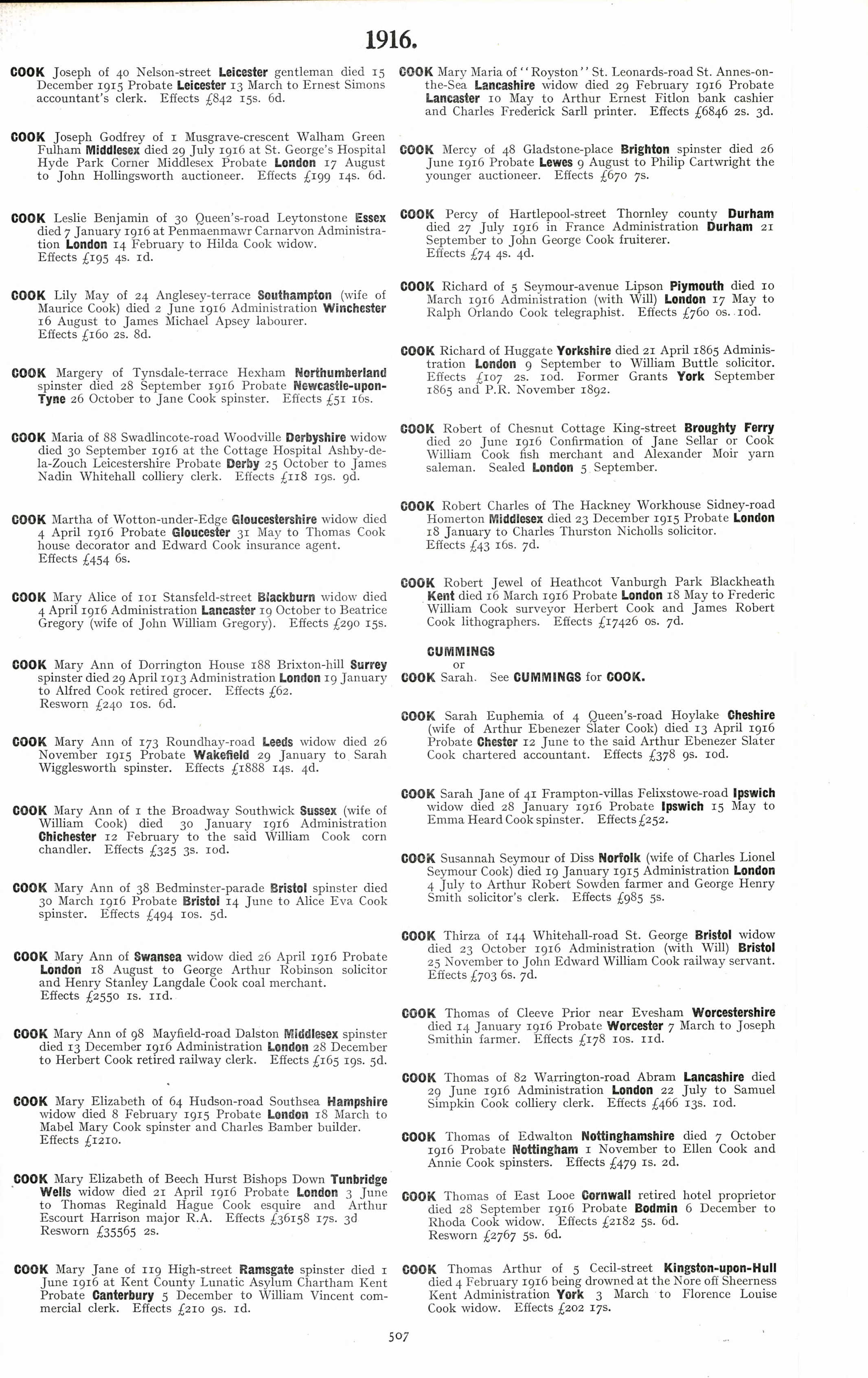 • Probate: 1210 Pounds, 18 Mar 1916, London.