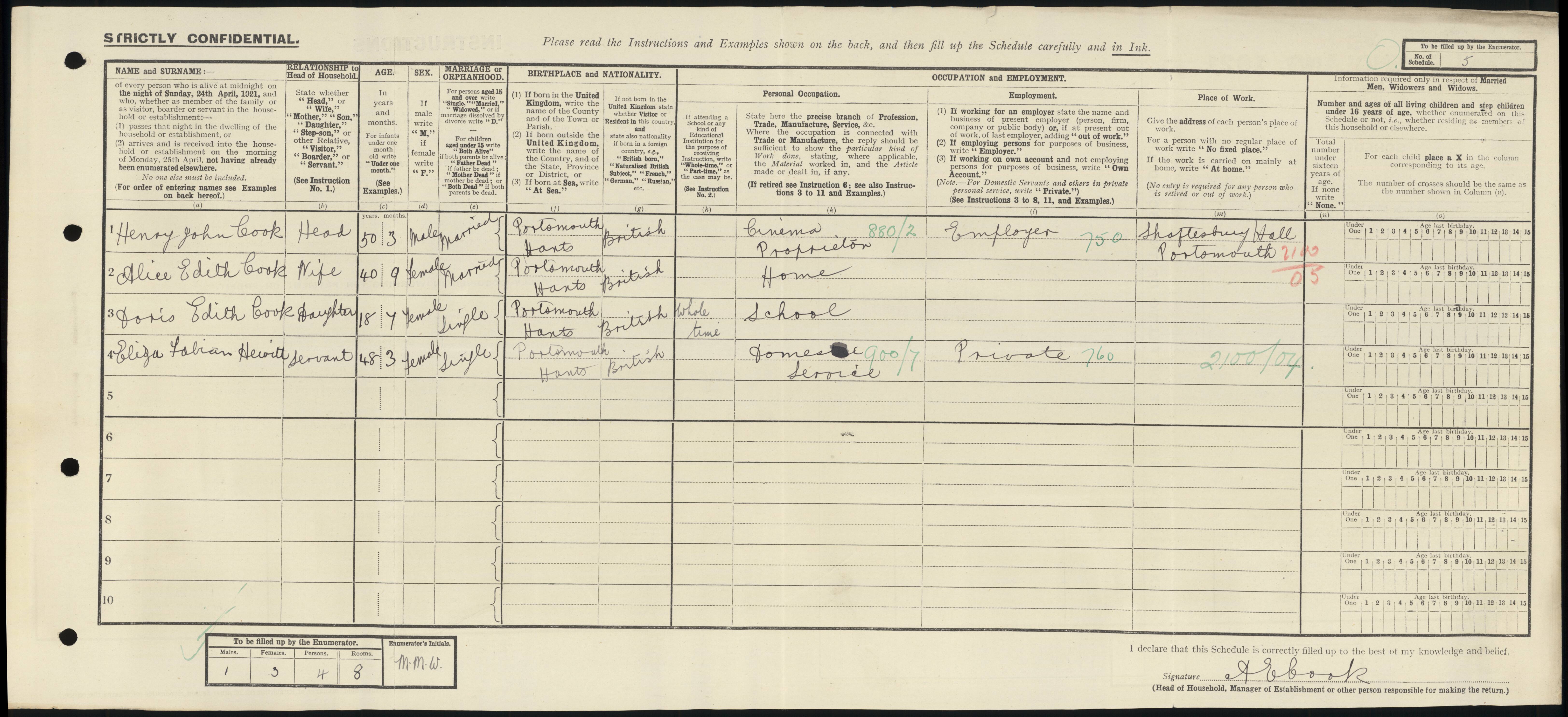 • Occupation: Cinema Proprietor, 1921, Portsmouth.