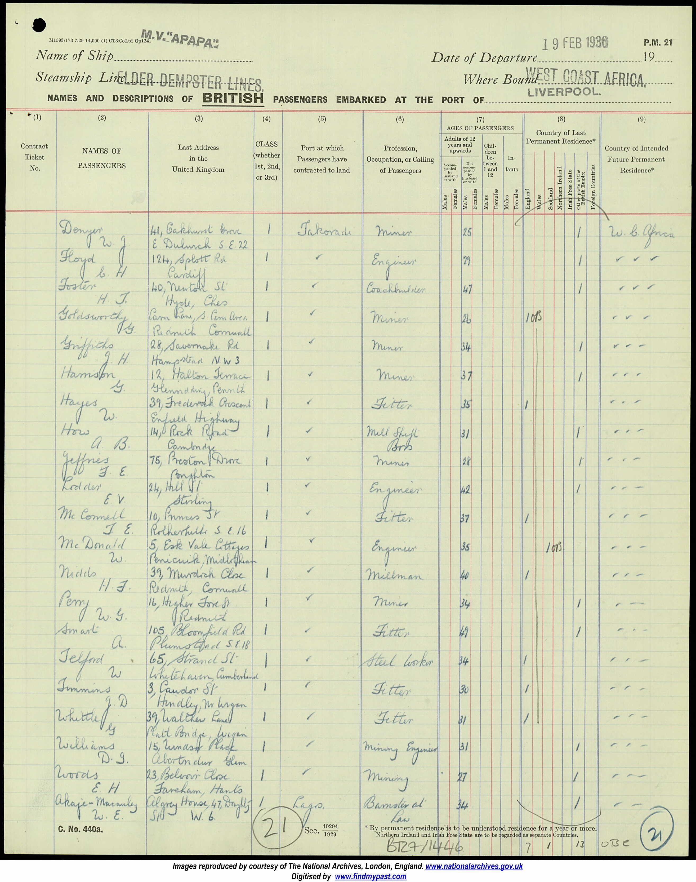 Another name for Henry was Henry M Nidd. Events • Lived at: 12 Plyne Street, 1901, Charles, Plymouth. 2 • Occupation: Miner, 1927, West Coast of Africa. • Lived at: 1 Wesley Street, 1927, Redruth, Cornwall, England. • Travel: to Rio De Janeiro, 1922, Brazil. Henry married Annear Dec Q 1921 in Redruth, Cornwall, England. (Annear was born after 1902 and died after 1936.) |