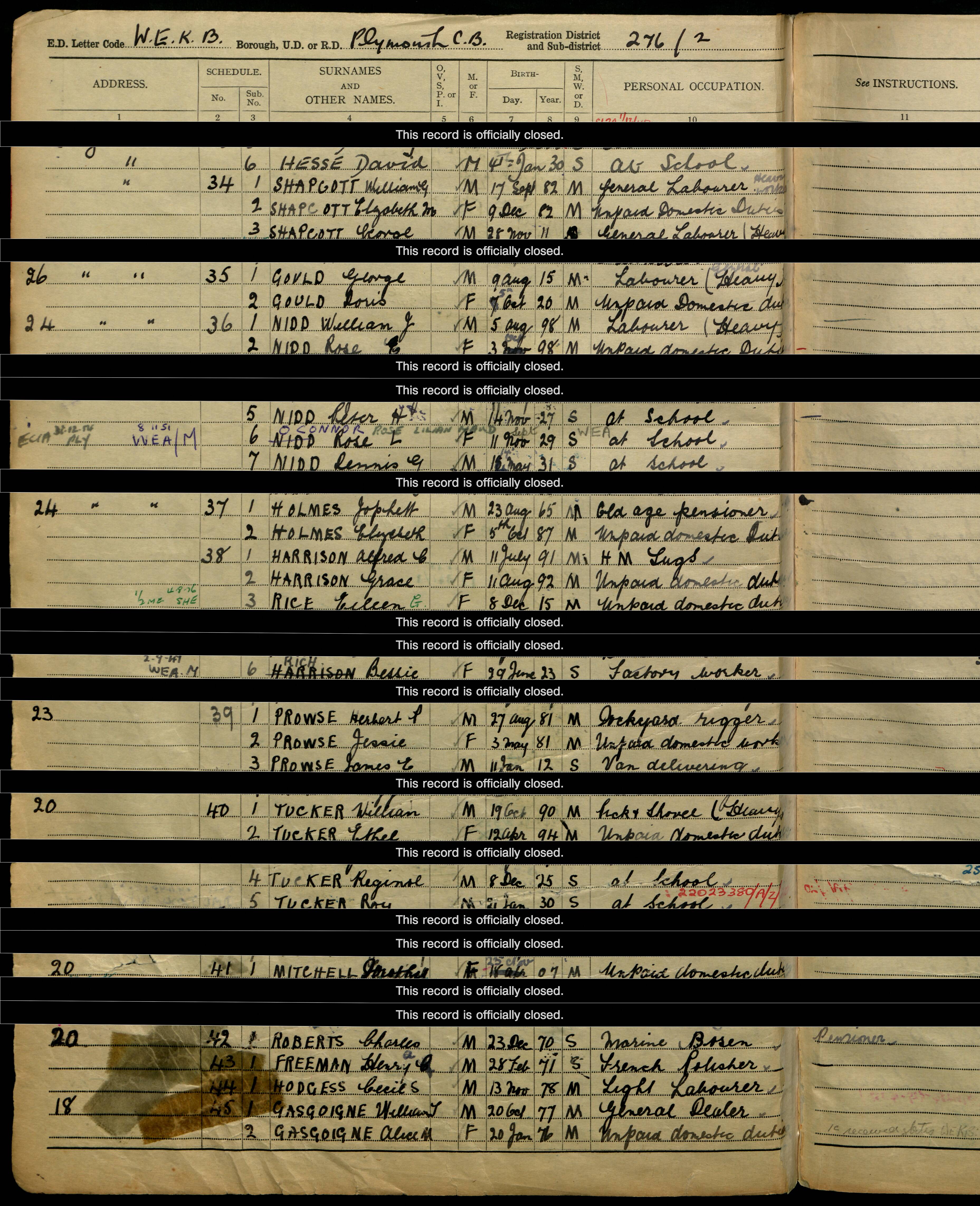 Events • Alt. Birth: as per 1939 Register, 14 May 1931.
