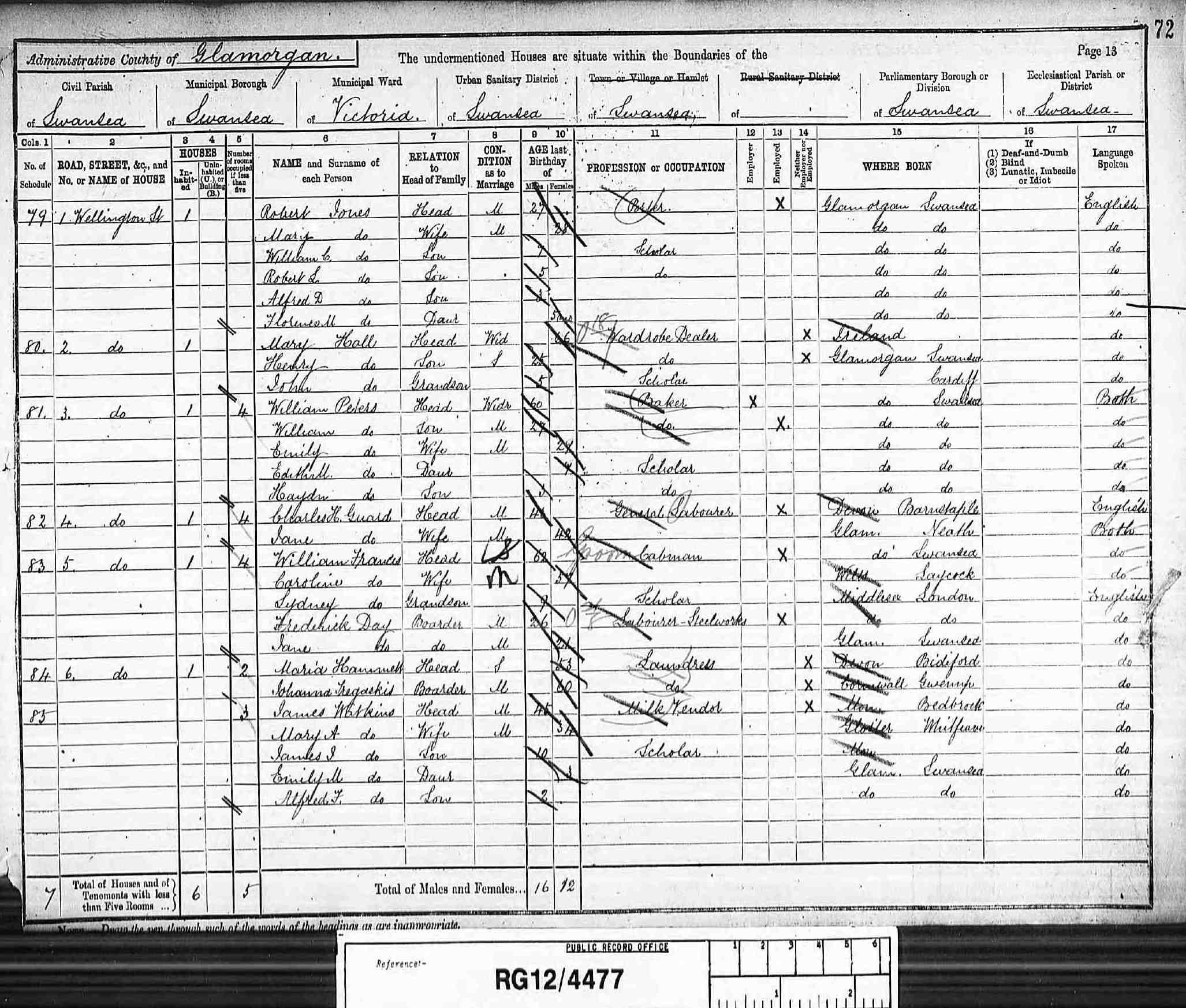 • Lived at: 2 Wellington Street, 1881, Swansea, Glamorgan, Wales. 9 • Lived at: 2 Wellington Street, 1891, Swansea, Glamorgan, Wales. 10