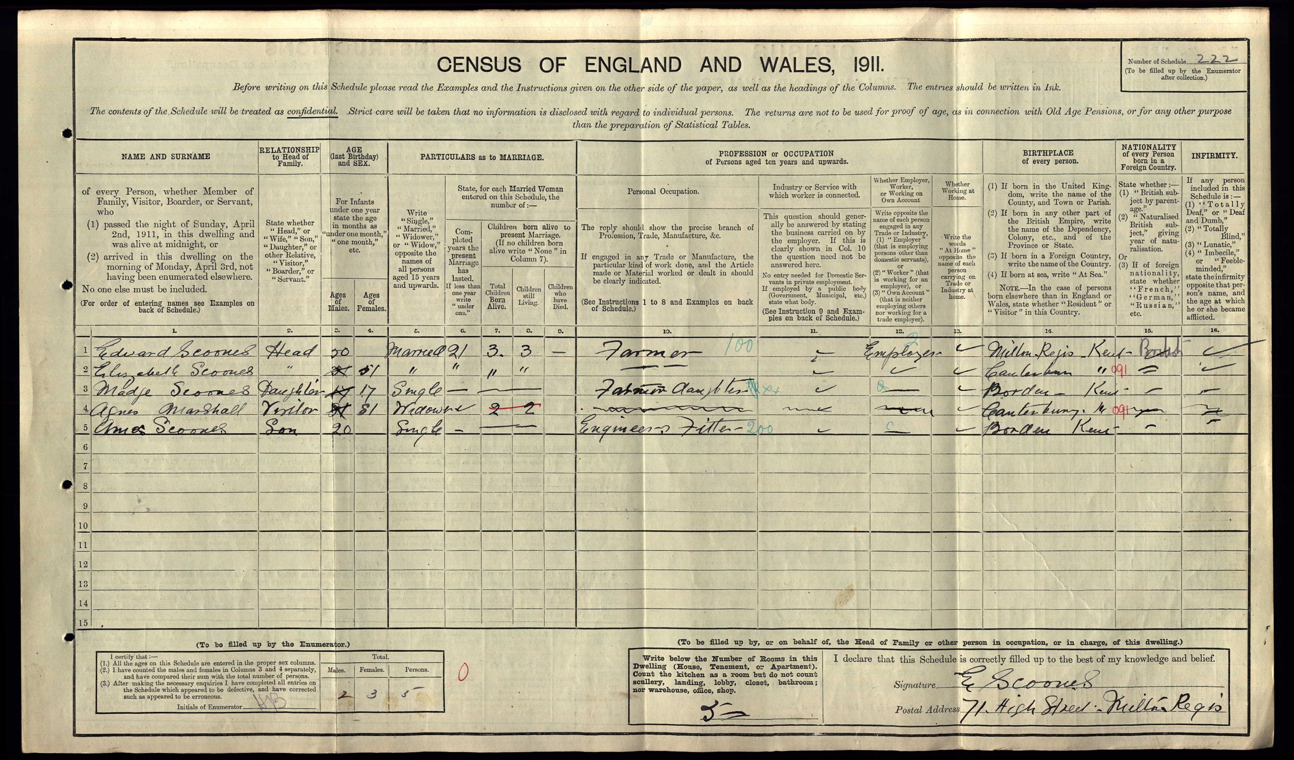 • Occupation: Farmer, 1911, Milton Regis, Kent, England.