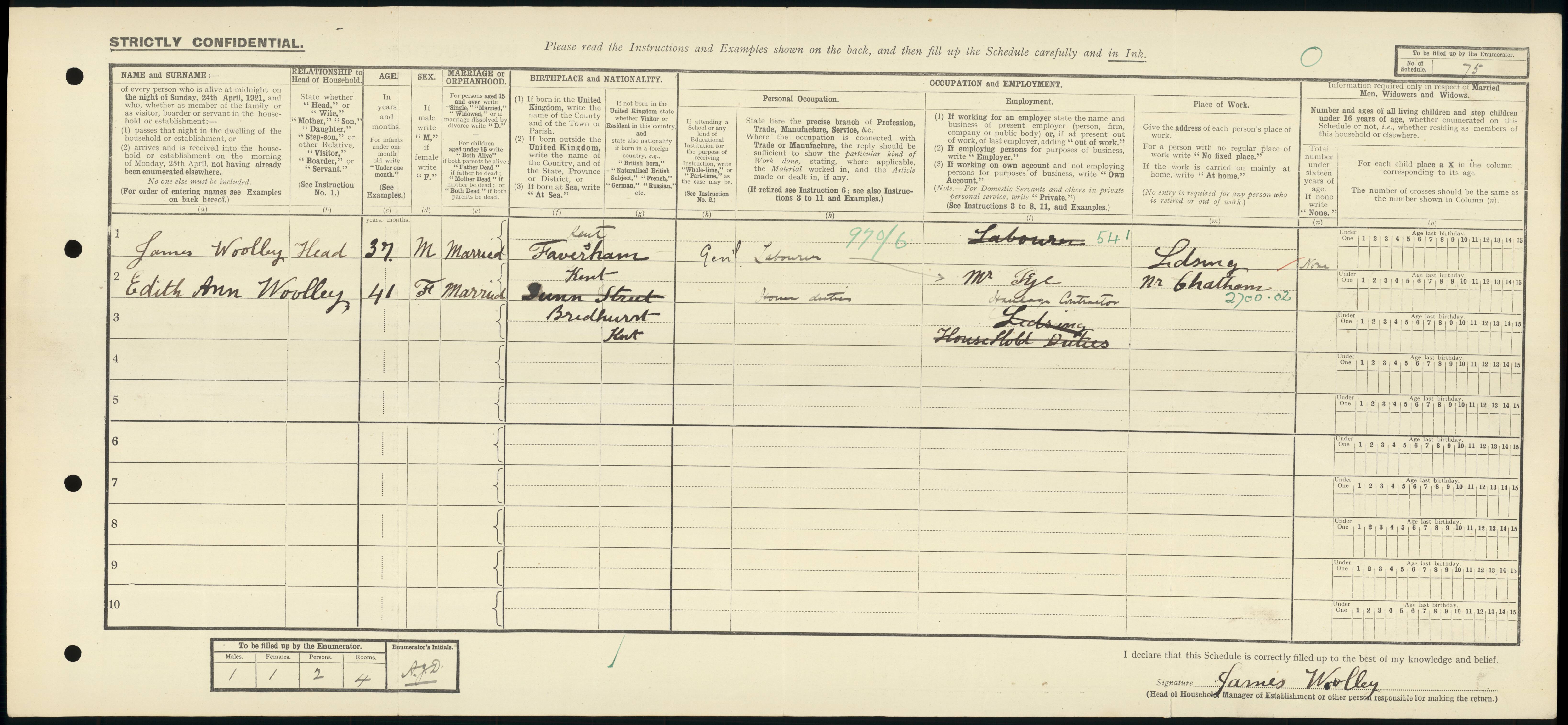 • Lived at: Dunn Street Bredhurst, 1921, Boxley, Kent, England. Edith married James Woolley Mar Q 1918 in Hollingbourne, Kent, England. (James Woolley was born in 1883 in Faversham, Kent, England.) |