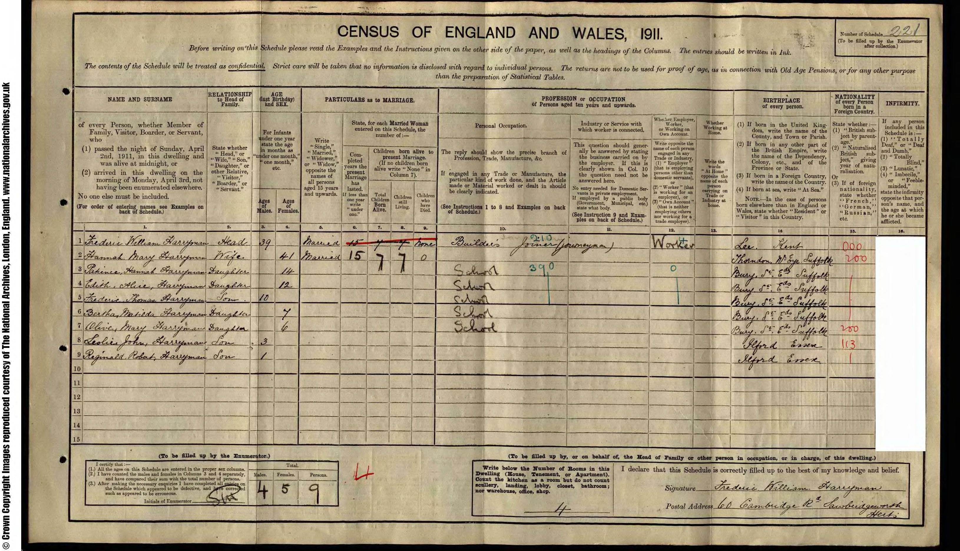 • Lived at: 60 Cambridge Road, 1911, Sawbridgeworth, Herts.