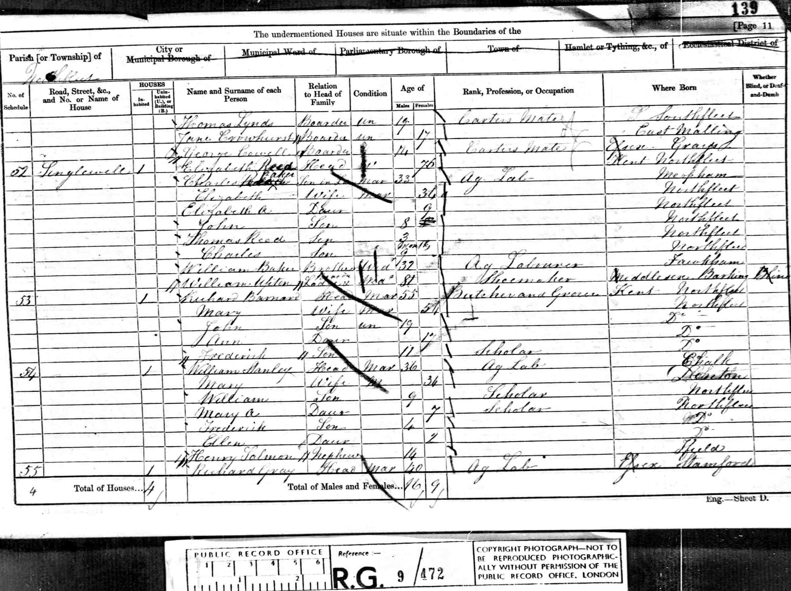 • Occupation: Butcher, 1851-1861, Northfleet, Gravesend, Kent, England. 3
