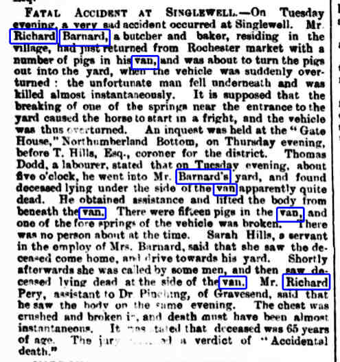 Cause of his death was Accidently killed by the upsetting of a van. Events • Occupation: Farmer.