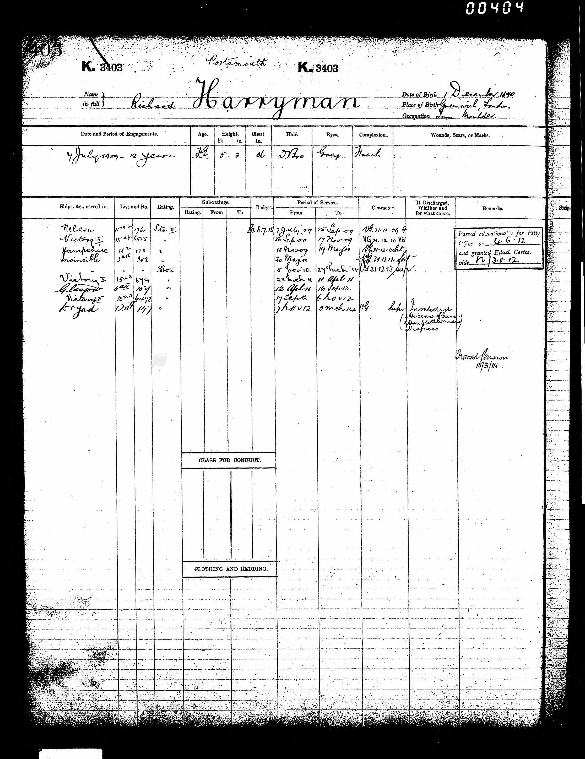 • Lived at: 28 Blakely Buildings, 1923. • Lived at: 97 Charlton Park Lane, 1943, Charlton, Kent, England. • Probate: to Gertrude Harryman, 1943, Llandudno, Wales. effects 260 7s 8d Richard married Gertrude Evans Jun Q 1914 in Greenwich, Kent, England.1 (Gertrude Evans was born circa 1895 and died after 1943.) |
