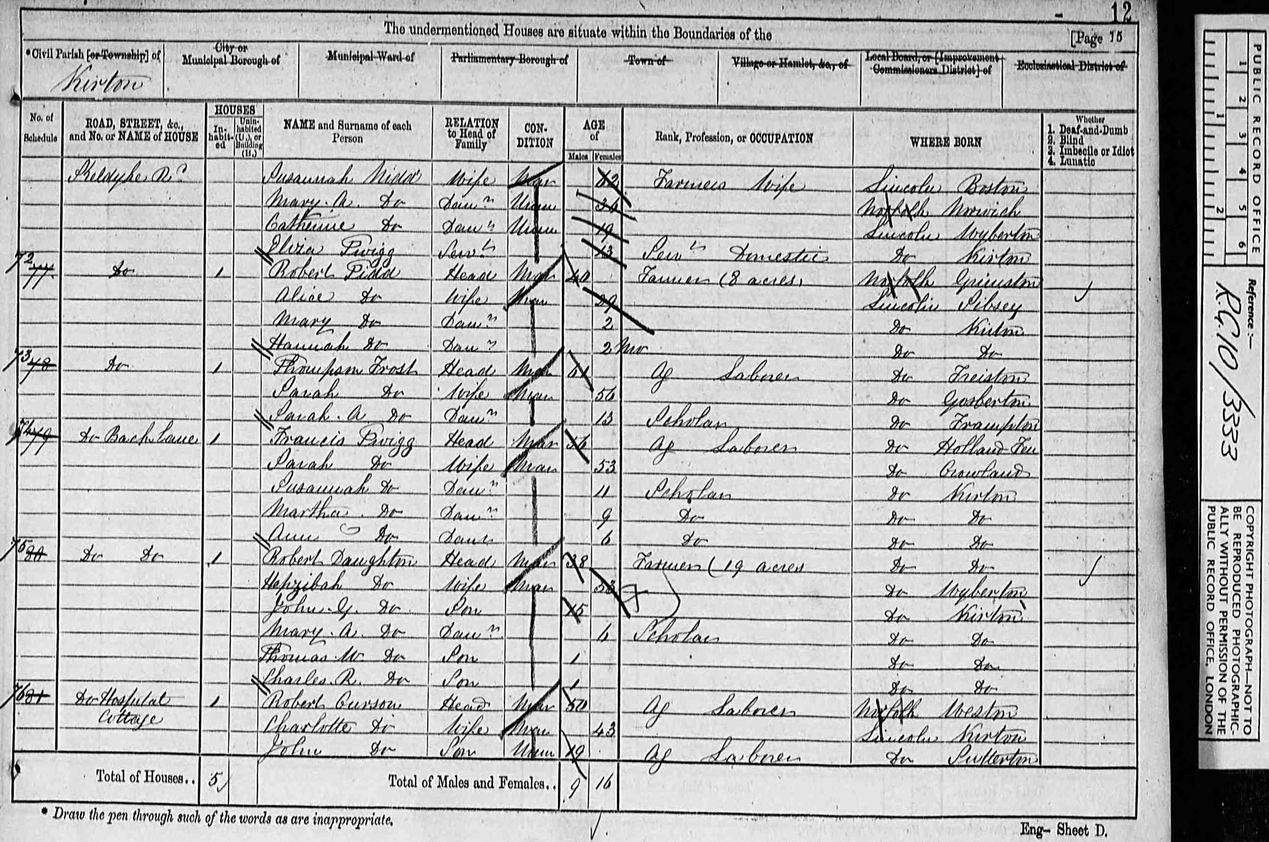 • Lived at: Skeldyke Road, 1871, Kirton, Lincolnshire, England. 10 • Occupation: Farmer (66 acres employe 2 labourers and 1 boy), 1871, Kirton, Lincolnshire, England. 11